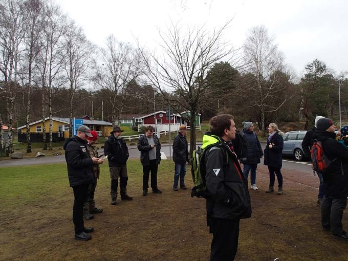 Efter min lilla rundvandring bland närbelägna burkar anlände jag några minuter i 10 till eventplatsen för ”Glashalt” ett skridskoevent, då var vi blott tre burkletare på plats och ingen arrangör syntes till. Efter några minuter hade det hunnit bli en ganska god samling av geocachare. Men det verkade endast vare en som kom utrustad för att bege sig ut på den glashala isen i Ruddalen.