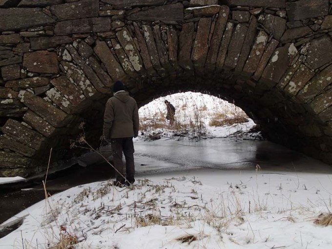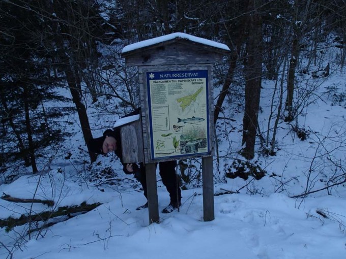 Då var det åter dags för team H I J T (Hallén, Ingabo, Jsson, TMR68) att bege sig ut på jakt. Tre av oss färdades från Göteborg och mötte Ingabo i Kungälv, nästan i skuggan av den stora fästningen. Därifrån färdades vi upp genom älvdalen mot norr. Dagens första vandring skulle bli i samband med att vi letade efter burkarna i ”Rapenskårs” området. Det visade sig dock svårare än väntat, både på grund av en hel del snö och att vi även lyckades trassla till multin rejält, mer än två timmars cachingtid ägnades en trestegsmuti… men så lång tid hade det inte behövt att ta!