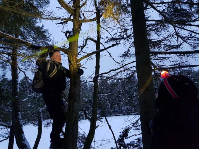 Roligt att från soffan i värmen följa era framgångsrika aktiviteter. Planerade för en tid sedan ett liknande upplägg vilket skrinlades då jag saknade såväl isdubbar som ispik. Efter ett par landbaserade cacher konstaterade vi att risk för förfrysning av fingrar inte saknades. Övergick istället till lite Munzeejakt.