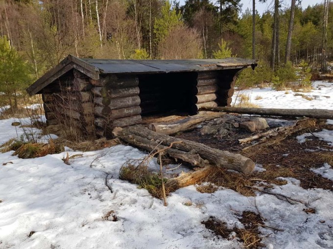 Burkarna låg med 3-500 meters mellanrum så det var inte fråga om någon PT-sträcka, men en trevlig tur i skogen. En avvikelse gjordes givetvis även till en annan av Jssons burkar, ”På väg till Stentjärn”, när jag ändå hade vägarna förbi. Alla burkar kunde hittas trots snön, det var bara en cache där jag tvingades till en fotologg då burken var hårt fastfrusen. Lite längre fram på rundan kom jag fram till vindskyddet vid Stentjärn och där kunde jag slå mig ned på en stock, njuta av vårsolen och av min medhavda matsäck.