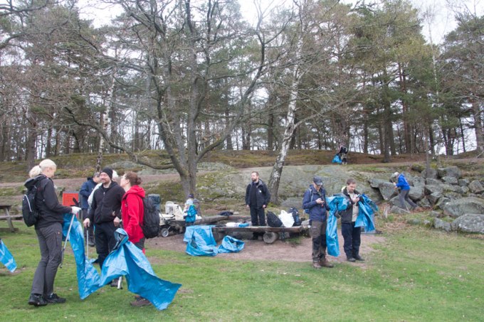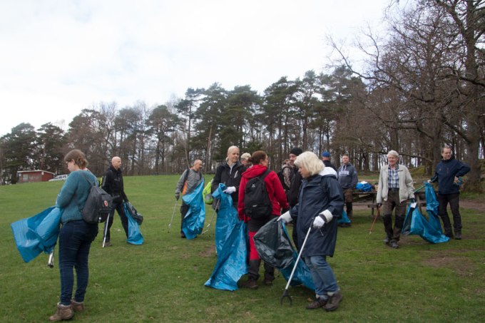 Istället blev det en lägerplats invid Delsjöbadet som valdes ut. Strax efter starttid kom det några grupper med burkletare – idag förvandlade till skräpletare med plockare i högsta hugg. Säckar och handskar delades ut och alla försvann ut på skräpjakt. Men området hade inte mycket skräp att erbjuda, det var tämligen välstädat.