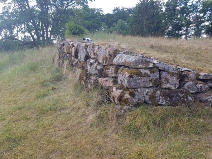 Strax innan Hökerum skulle vi komma in i ett område där vi kunde bese fantastiska historiska lämningar, ett område som enligt mitt tycke var dagens verkliga höjdpunkt. Både söder och norr om den gamla banvallen fanns de lämningar av såväl stormansgårdar som borganläggningar. Orsaken var givetvis ån Viskan som rinner hela vägen från sjön Tolken till trakten strax norr om Varberg (där bland annat Ås kloster låg). Detta var en av de viktiga färdvägarna från kusten till inlandet. Utmed Viskan finns borgar så som Kinnaborg och Öresten innan resenären från kusten slutligen nådde upp till sjön Mogden och de makthavare som under medeltid (och troligen även tidigare) kontrollerade trakten.