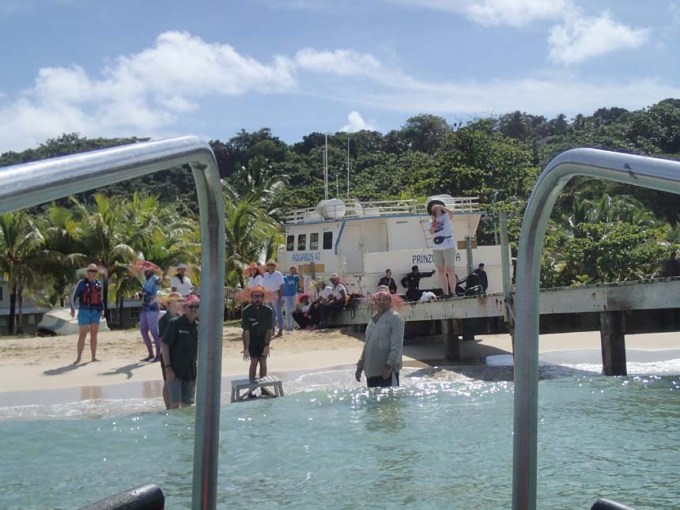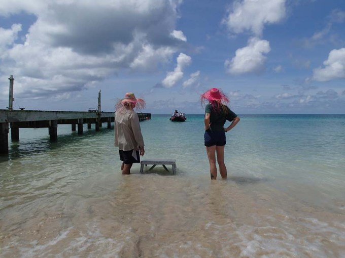 Båtar med tull- och migrationsfolk kom ut till Fram när vi ankrade utanför ön. De skulle stanna i närområdet hela dagen, tidvis i sällskap av kustbevakningen/flottan. Det var dock snabbt och enkelt att få ett godkännande att komma iland, här skulle det bli en blöt landstigning så rätt skodon fick väljas.