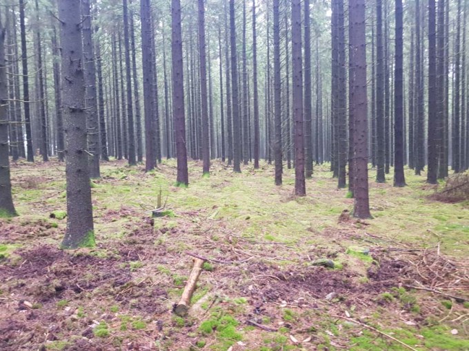 Åstebo passerades och nu började jag närma mig dagens första burk ”Zkogspromenad #3”. Det blev en tur i stiglöst land över höga tuvor och runt en del dyhål. Bruken hängde snällt på sin gren och väntade på att få min signatur i loggboken.