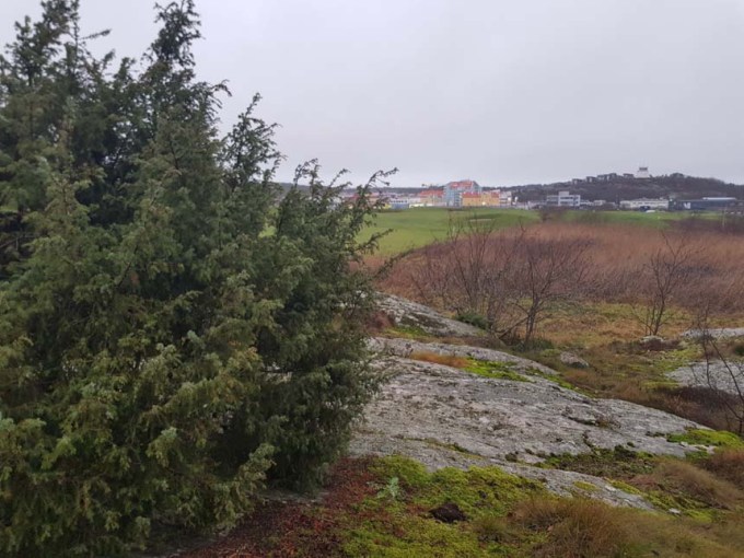 Stärkt av dessa framgångar beslutade jag mig för att försöka vända ännu en gammal DNF till en glad gubbe. Över stock, sten och stig samt genom snårskog och över berg gick nu färden till ”Torslandavikens naturstig nr 5 – Toppen” där jag också var och letade 14 november 2015, utan resultat. Idag var dock förhållandet ett annat och efter lite letande visades sig även denna burk och blev signerad.