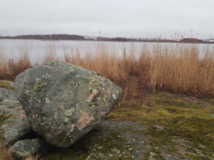 Sommartid hade det gått kreatur på bete ute på halvön, det var en fördel då de hade plöjt upp stigar genom vass och buskar som underlättade färden genom landskapet. Det blev där ute besök vid två stenar och två cacher, ”Karholmen” och ”Karholmens udde”. Vid Karholmens udde blev det även lite fika för att beundra denna förhållandevis vilda del av Hisingen, om än att de stora raffinaderierna tornade upp sig vid horisonten.