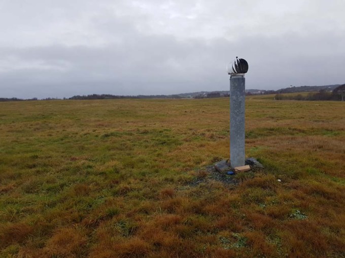 Jag fortsatte nu vandringen ut på den asfalterade vägen, undslapp gaslarm, men vid ”Torsvikens entré” blev det tyvärr en DNF. Två mugglare med hundar anlände till platsen så jag avbröt sökandet något tidigare än vad jag kanske hade gjort om jag varit ensam. Asfalten lämnade jag bakom mig och gick ut över de gröna vidderna, men låt er inte luras, allt det gröna döljer en stor tipp.