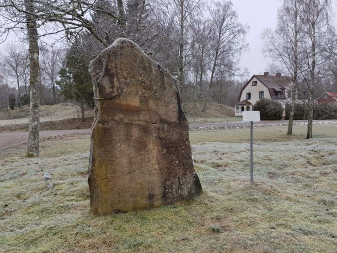 Texten på stenen lyder: ”Ingjald satte denna sten efter Grimulv sin son”