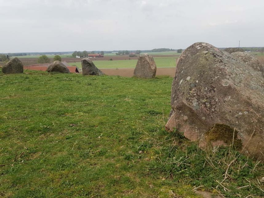 På väg mot nästa vandring blev det givetvis några stopp utmed vägen, ett av dessa visade sig vara en av dagens mest intressanta platser, cachen ”Amundtorp”. Här finns domarringar och en stor skeppssättning samt många andra gravar och lämningar vilka alla har en storslagen utsikt över Hornborgasjön.