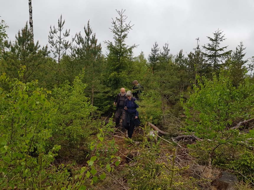 Det var länge sedan vi begav oss söder ut på en gemensam cachingtur. Under lördagen var det dock dags igen för team H I J T (Hallén, Ingabo, Jsson, TMR68) att färdas nedåt Halmstad för att se om där kunde finnas några burkar att logga. Det är ganska lång transportsträcka till Halmstadstrakten så det var en lättnad att komma ut på den första vandringsslingan ”Åleds skogsrunda”.