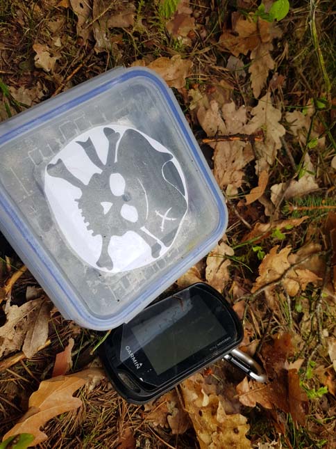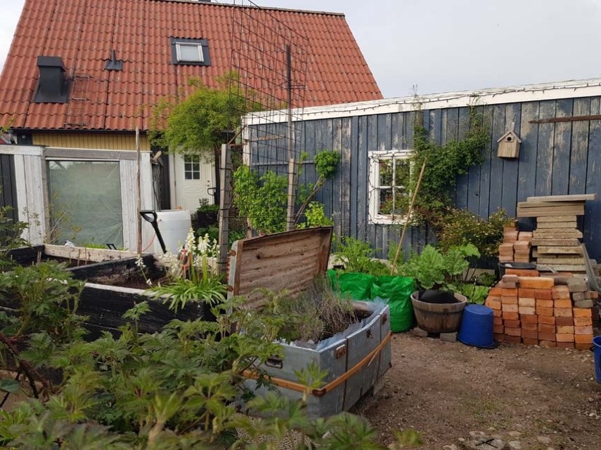 Ibland blir geocaching ”Hemma hos” när burken ligger inne på CO:s bakgård – bokstavligt talat. Vi stannade till för att besöka Kronblom, men vi såg inte någon ligga på soffan under tiden vi loggade.
