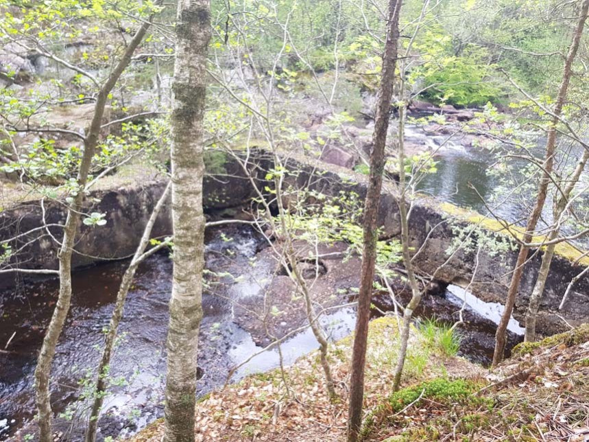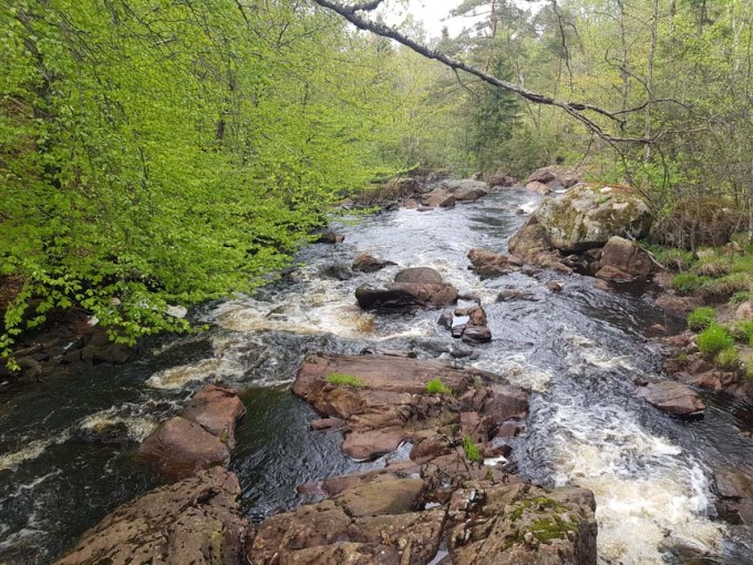 Ute i skogen träffade vi på det lokala Niagarafallen… Danska fallen i ån Asman. Enligt en sägen skall efter slaget vid Fyllebro den flyende danska hären ha tagit vägen förbi detta fall. Svenskarna hade byggt en bristfällig bro och jagade ut danskarna på den, varvid många föll i vattnet och drunknade. Enligt sängen skalla detta ha hänt år 1676. I samma område finns också Prästfallet där skylten på platsen berättar följande: Vid fallet uppströms bron vid Assman hade präsen Jöran Fries i Breared kvarnverksamhet på 1660-talet. I Hallands historia kan man läsa följande om prästen ”Jöran Friis var pastor under danska tiden, hade förut varit pastor på Jutland men råkat i onåd och såsom en följd därav fått transport till Breared. Sedan han varit här någon tid, fanns han alltför tillgiven katolska läran, och kunde ej förmås att bortlägga den så kallade Röda boken. Alltför böjd att blanda sig uti statsangelägenheter, blef Jöran Fries avsatt ifrån ”Breareds pastorat.”