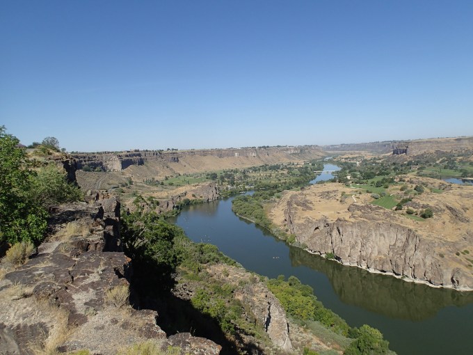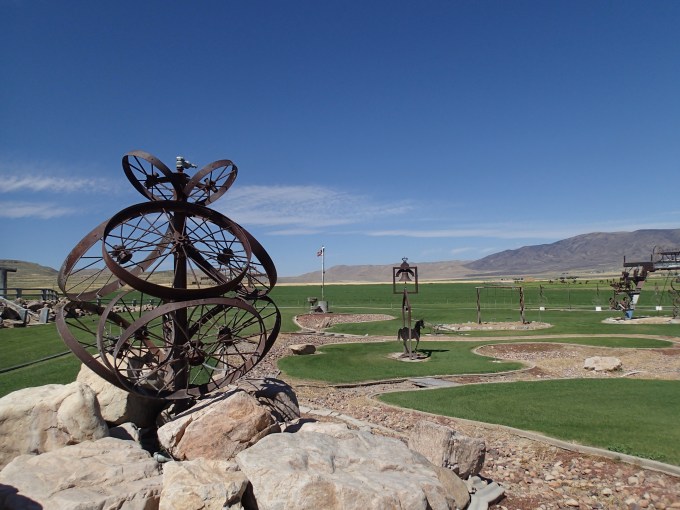 Hade det inte varit för skylten som visade delstatsgränsen hade det varit svårt att veta att vi kommit in i en ny delstat, landskapet såg likadant ut som i Idaho, stora slätter med buskar, jordbruksmark och stora berg. Men en ny delstat blev loggad och vi fortsatte vidare på denna i övrigt mycket monotona resa.