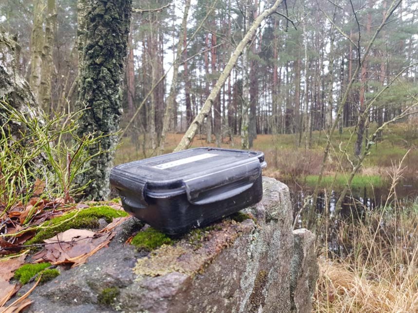 Ytterligare tre burkar hittades under den 12 kilometer långa vandringen, dessutom blev det fick vid en vacker liten tjärn på en lugn plats i Änggårdsbergen. En riktigt fin och stimulerande runda i området timmarna innan allt för många andra besökare hunnit dra på promenadskorna. Det finns lyckligtvis fler burkar i området så jag lär återkomma för att rensa lite i Änggårdsbergens södra delar vid ett senare tillfälle.
