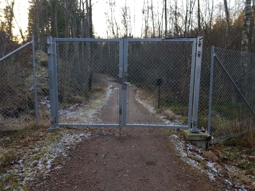 Men inte kunde jag nöja mig med endast denna burk nu när solen ville visa sig på en nästan molnfri himmel. Lite blåsigt var det, men beger man sig in i skogen brukar det bli lite skydd från vinden. En rask vandring gick ned mot cachinglinje nummer ett och den förde mig vidare mot Botaniska trädgården och Änggårdsbergen. Där hade jag en ”surdeg” som väntade, men först passade jag på att logga multin ”Gated Community”, först fick jag ett märkligt resultat med vid en kontroll hittades en långt mer trolig plats. Dock inte den på bilden nedan, den visar bara det staketomgärdade naturområdet.
