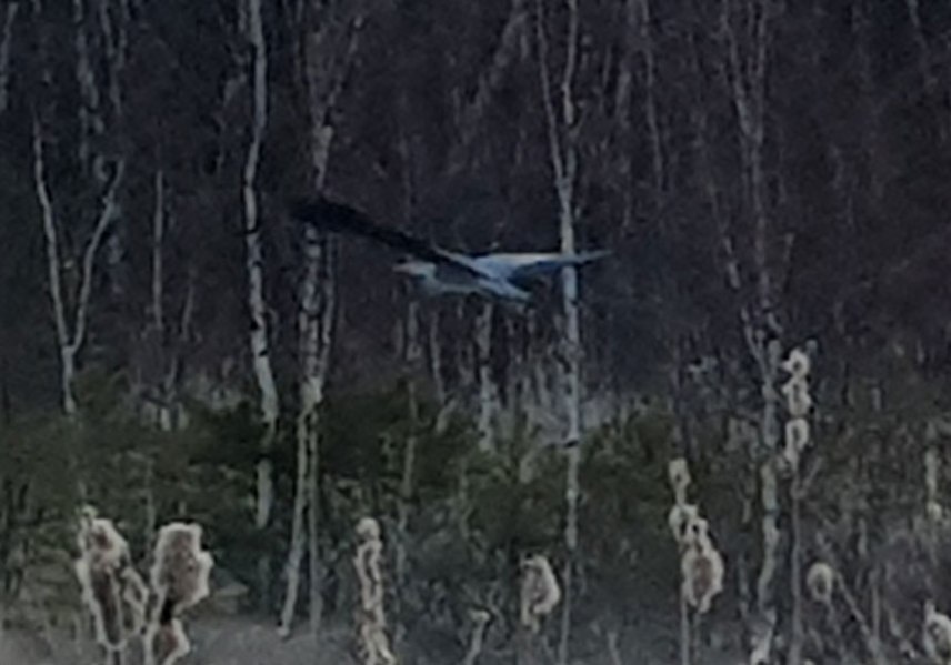 Snabbt loggad och sedan vidare mot det svarta vattnet, Svarttjärn, som egentligen är en uppdämd mosse och inte någon naturlig tjärn. Där kom en bonus, en häger lyfte när jag närmade mig.