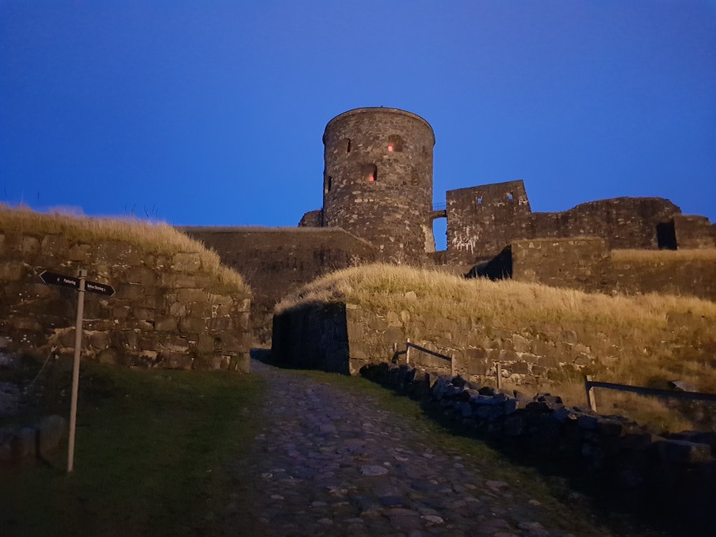 Bohus fästning tillhör en liten skara befästa platser i världen som aldrig erövrats. Det gäller därför att smyga när man är i närheten av dessa mäktiga murar, försvararna kanske är vakna och har gamla Bettan laddad och klar.. Men inga pilar haglade ned från höjden och inte ens de beryktade fårvakterna behagade visas sig. Men själva borgkullen erövrades naturligtvis inte så Bohus borggård står ännu på listan av platser att erövra.