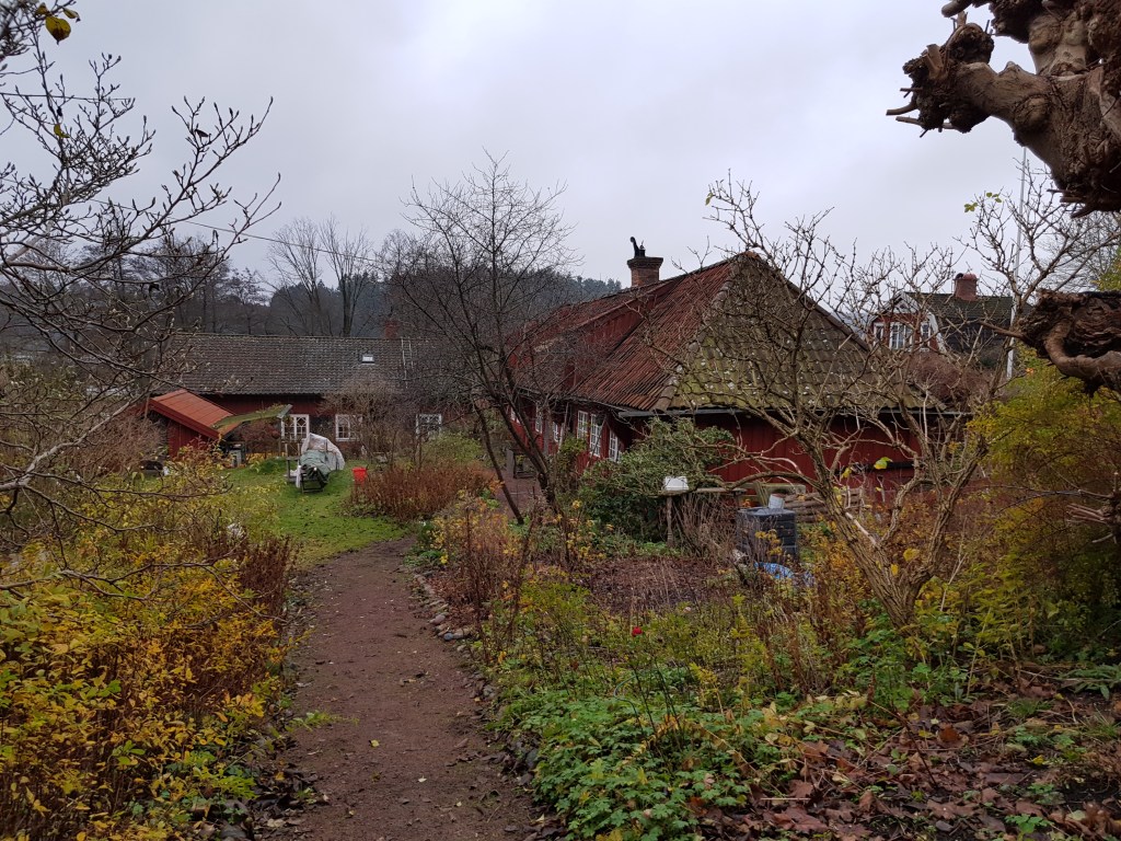 Genom ett mindre hav av lera gick sedan jakten på resterande virtuella punkter i jakten på bonusen. Vid flera tillfällen sjönk fötterna djupt ned i leran. Några kor syntes dock inte till, förmodligen har djuren flyttats hem till gården inför vintern. Till sist hittades även bonusen och som belöning blev det lite lunch ute i det fria, extra härligt i ett historiskt landskap som detta.