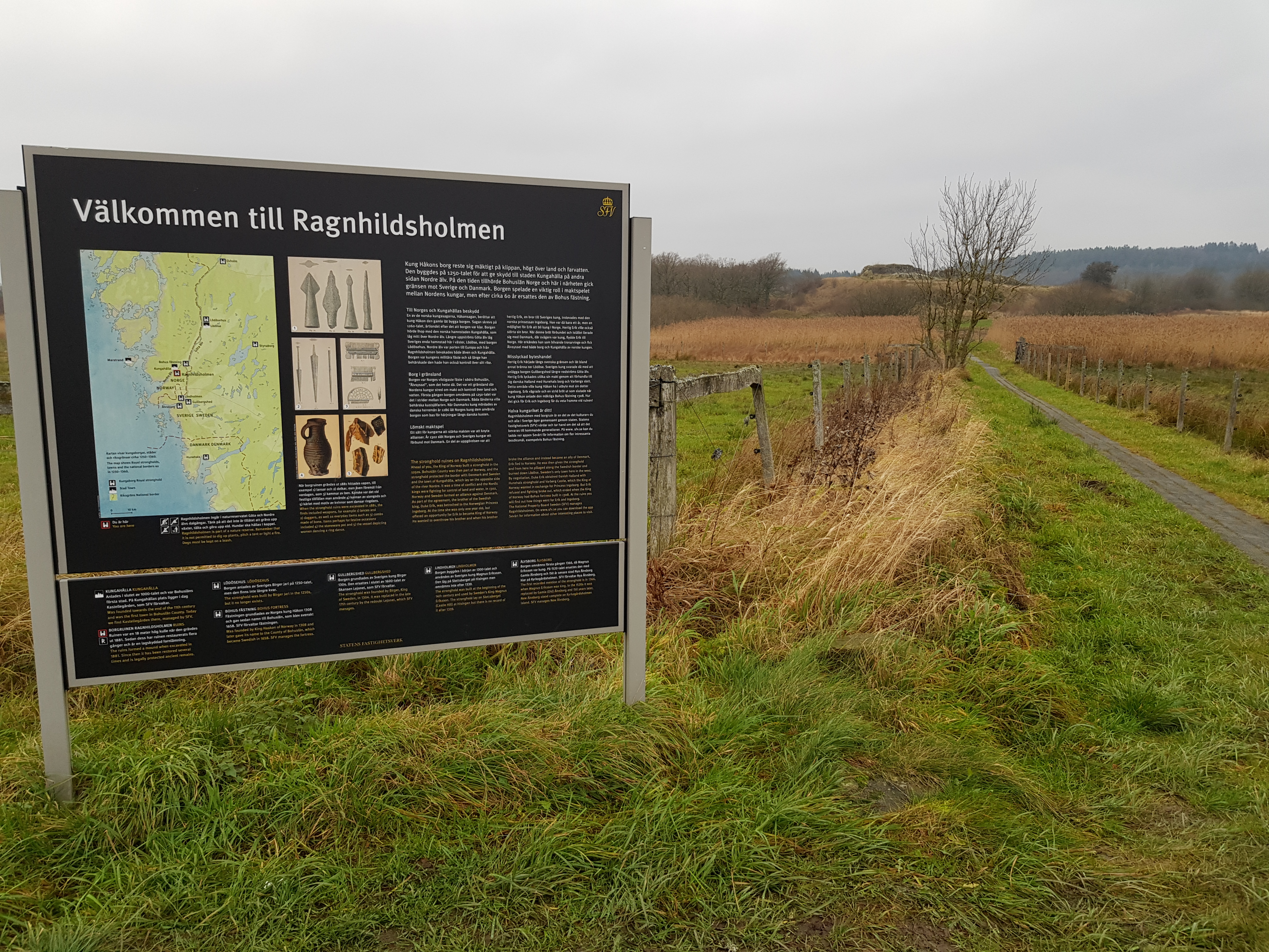 Burkletandet började omedelbart med lite julkänsla ”Göteborgs Julkalender 2019 #12 – Julstjärna”. Den hittades blixtsnabbt och det var dags att inleda besöket vid Ragnhildsholmen. Redan vid den första informationstavlan startade jakten på ALC Ragnhildsholmen med tillhörande bonus. Borgen omnämns första gången 1257 och hör ihop med staden Kungahälla som låg på andra sidan Nordre älv. Borgen avvecklades omkring 1310 när den nya anläggningen Bohus hade börjat uppföras.