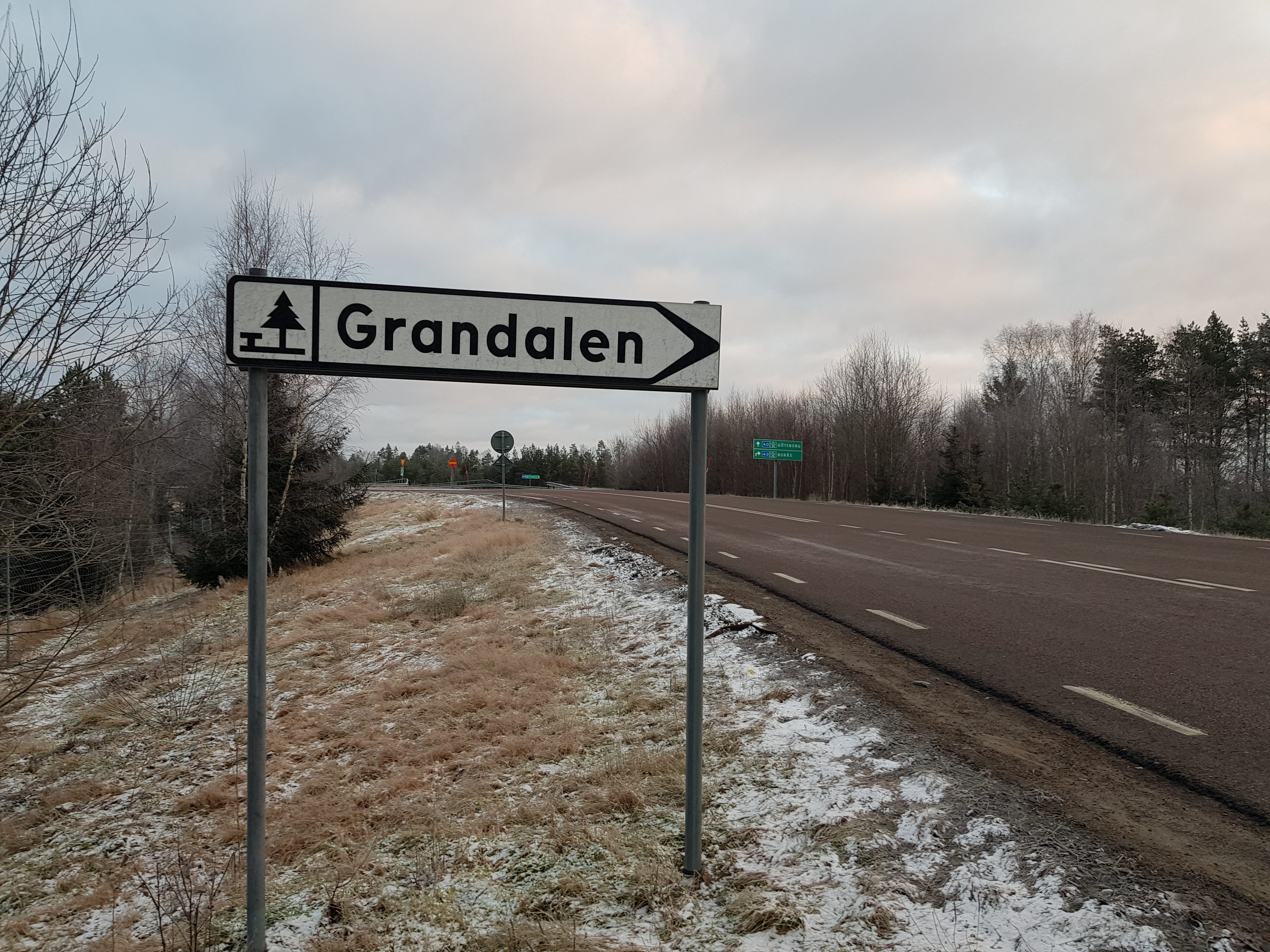 Nu återstod endast en cache i närområdet, Grandalen. Den avklarades snabbt och sedan var det dags att återvända upp mot den stora rastplatsen och göra sig i ordning för färden hem till geocachingbasen efter att fått 23 nya burkar till gc-kontot och 16 kilometers vandring i benen en kall, men solig januaridag – riktigt härligt!
