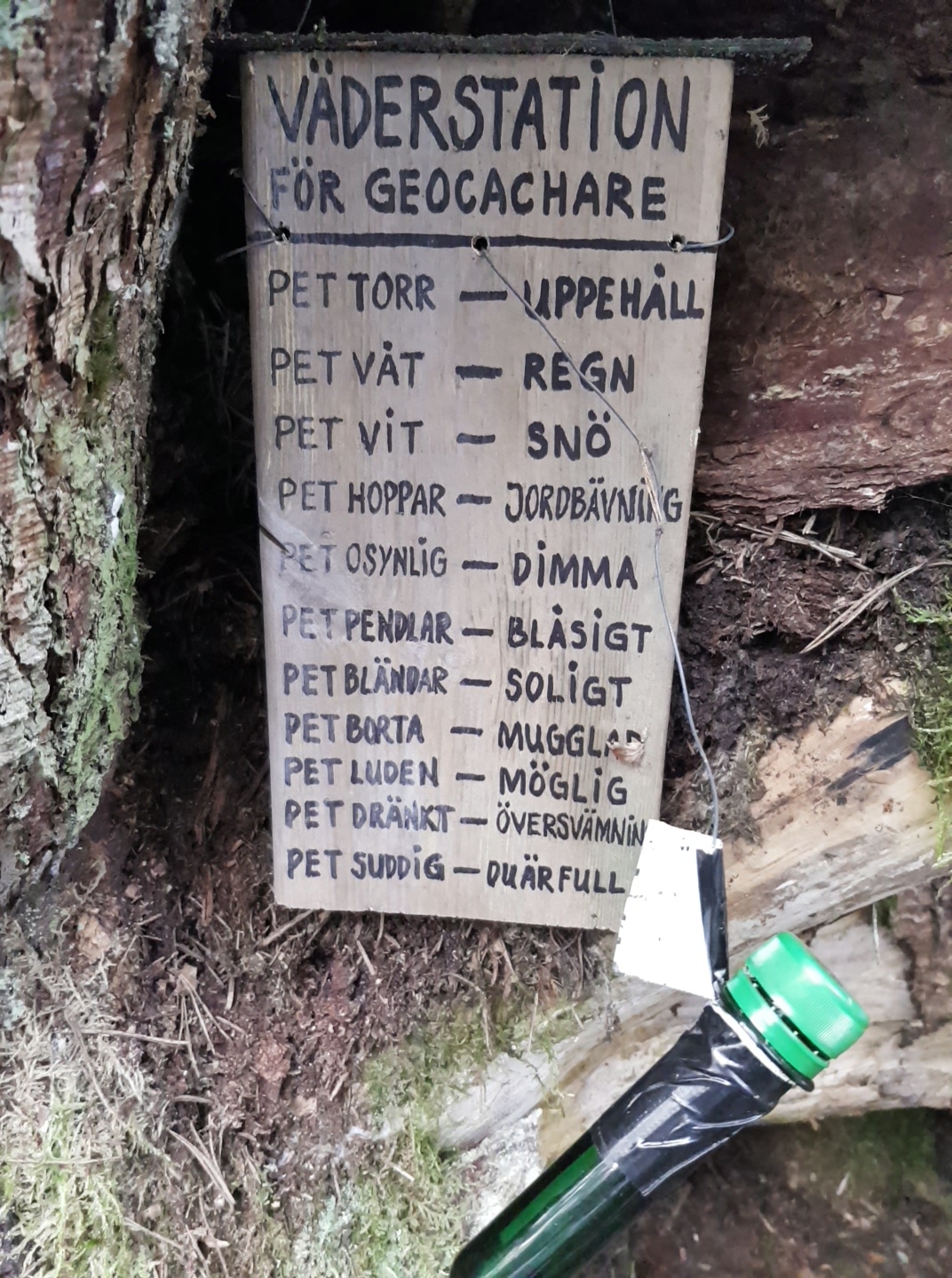 Som ni förstår av bilden ovan så fanns det en och annan lite mer speciell burk på denna runda, sånt livar upp! Bland annat fick jag lära mig hur man ställer en geocachingväderprognos.
