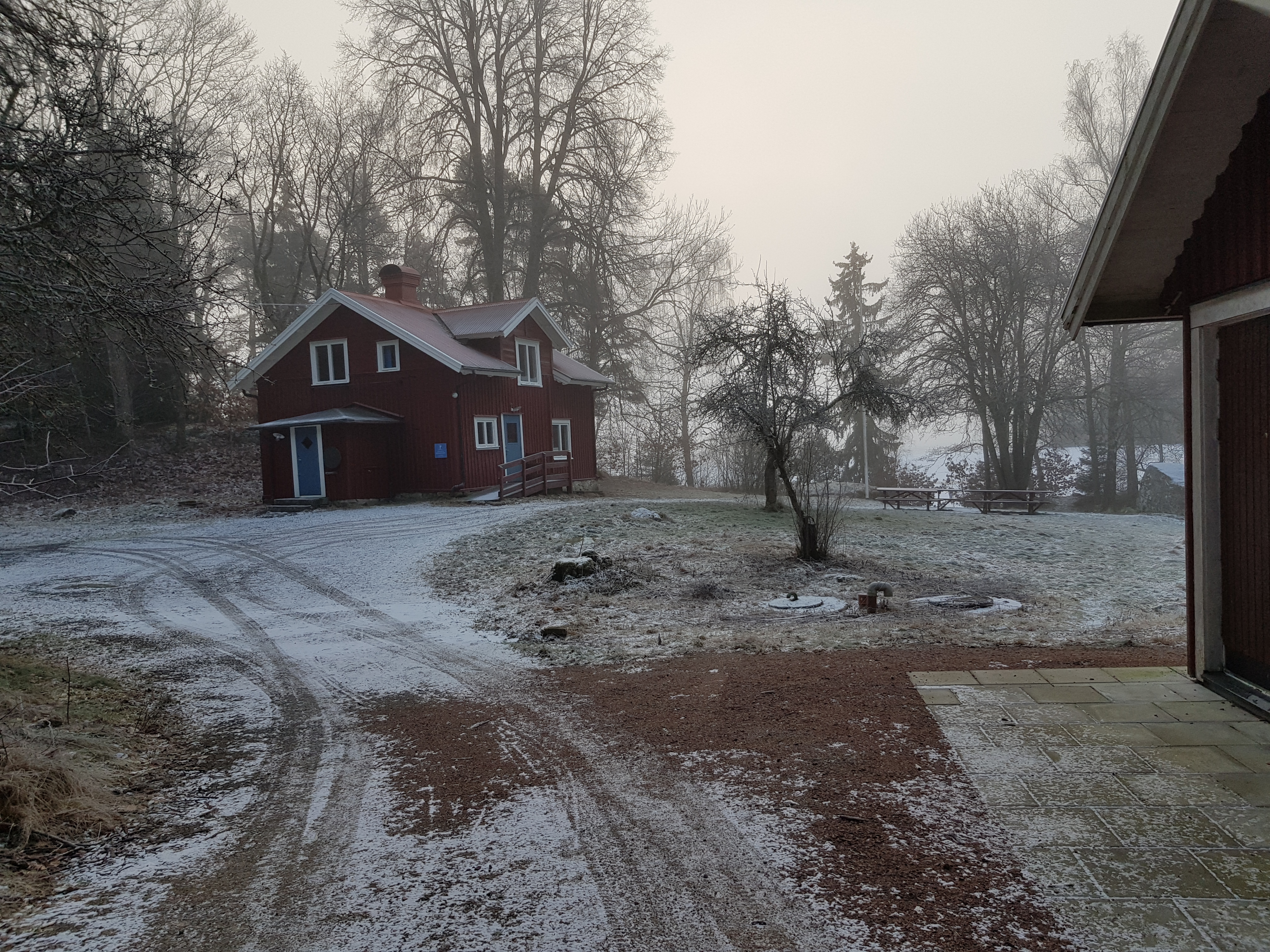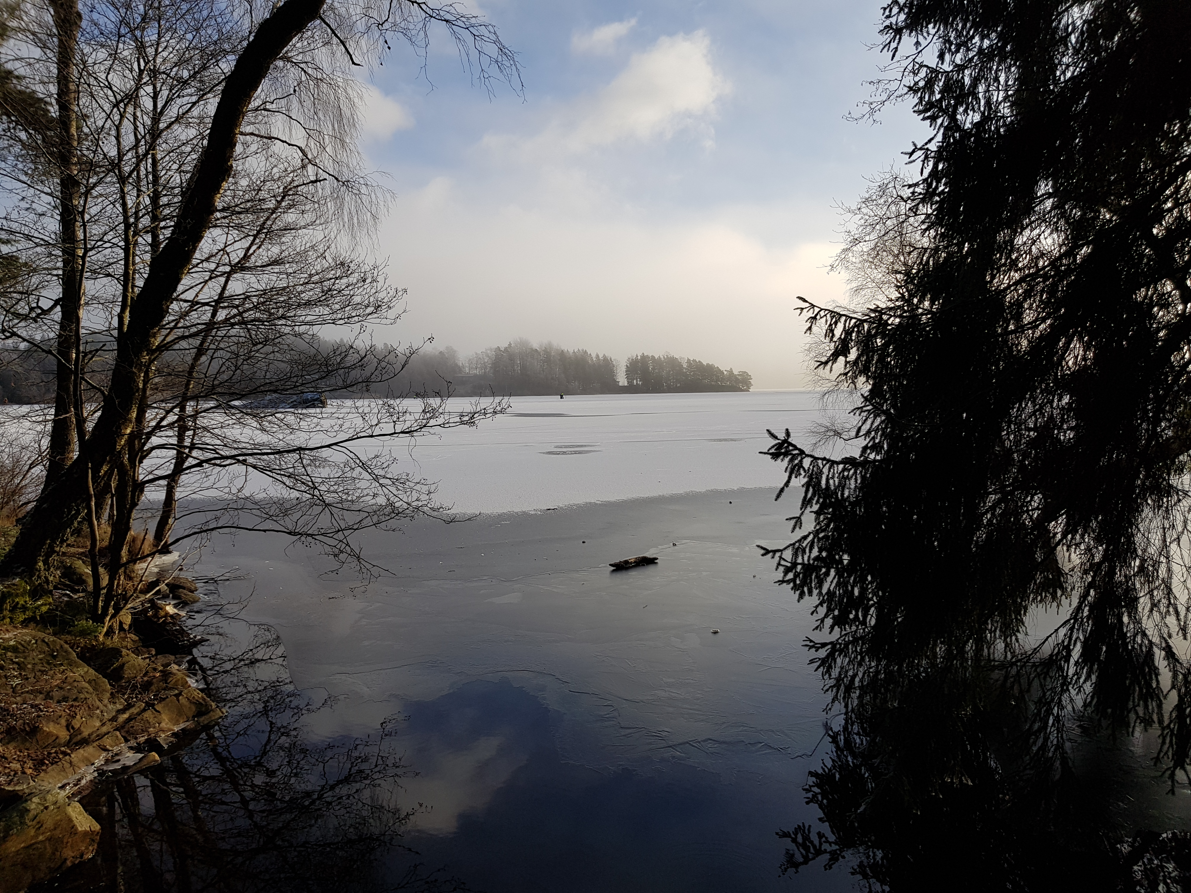 Det krävdes en stunds letande då det skedde på tok för långt in i källarbyggnaden. På väg ut så hittades burken. Även om det tog några minuter extra så fick man ändå tillfälle att studera det lokala djurlivet, djupfrusna spindlar. Nu blev det Tjärn #10 som var nästa cache som skulle få besök. Den hittades omedelbart intill den lilla frusna tjärnen.