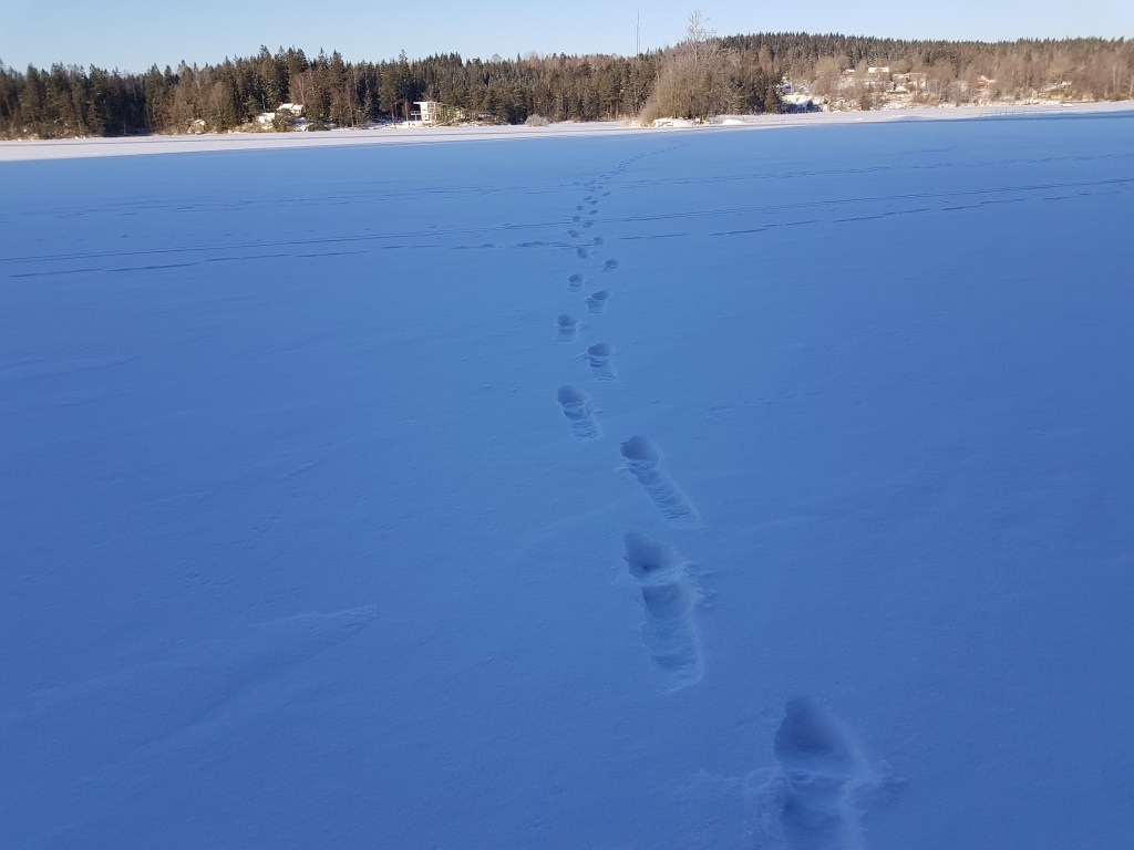 Huvudmålet denna dag var att bege sig ut på isen och det skulle ske i sällskap med Team IS, men jag tänkte fuska lite och värma upp med ö-cachen #3 Monway 10 år. île reborn and recykled. Isdubbarna plockades fram och hängdes om halsen och sedan iväg ut över isen i Ragnarssons fotspår.