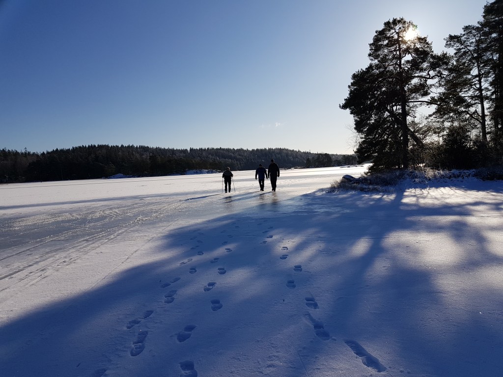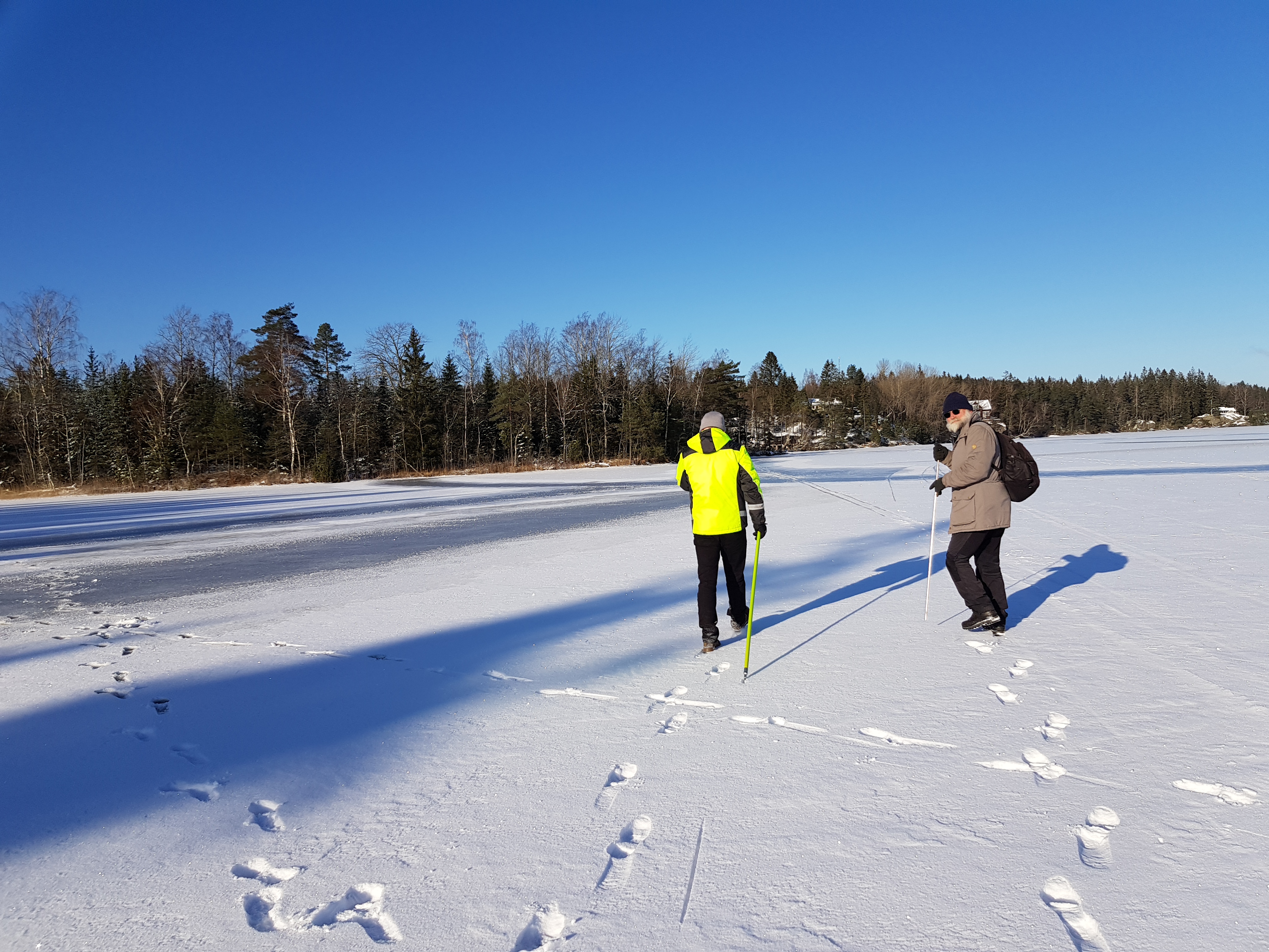Isen var mestadels i gott skick, men det gällde givetvis ändå att vara lite försiktig då det fanns svagare partier. Vi undgick dock att vinterbada och kunde få loggat ytterligare en cache på en ö och dessutom ett par ute på uddarna.