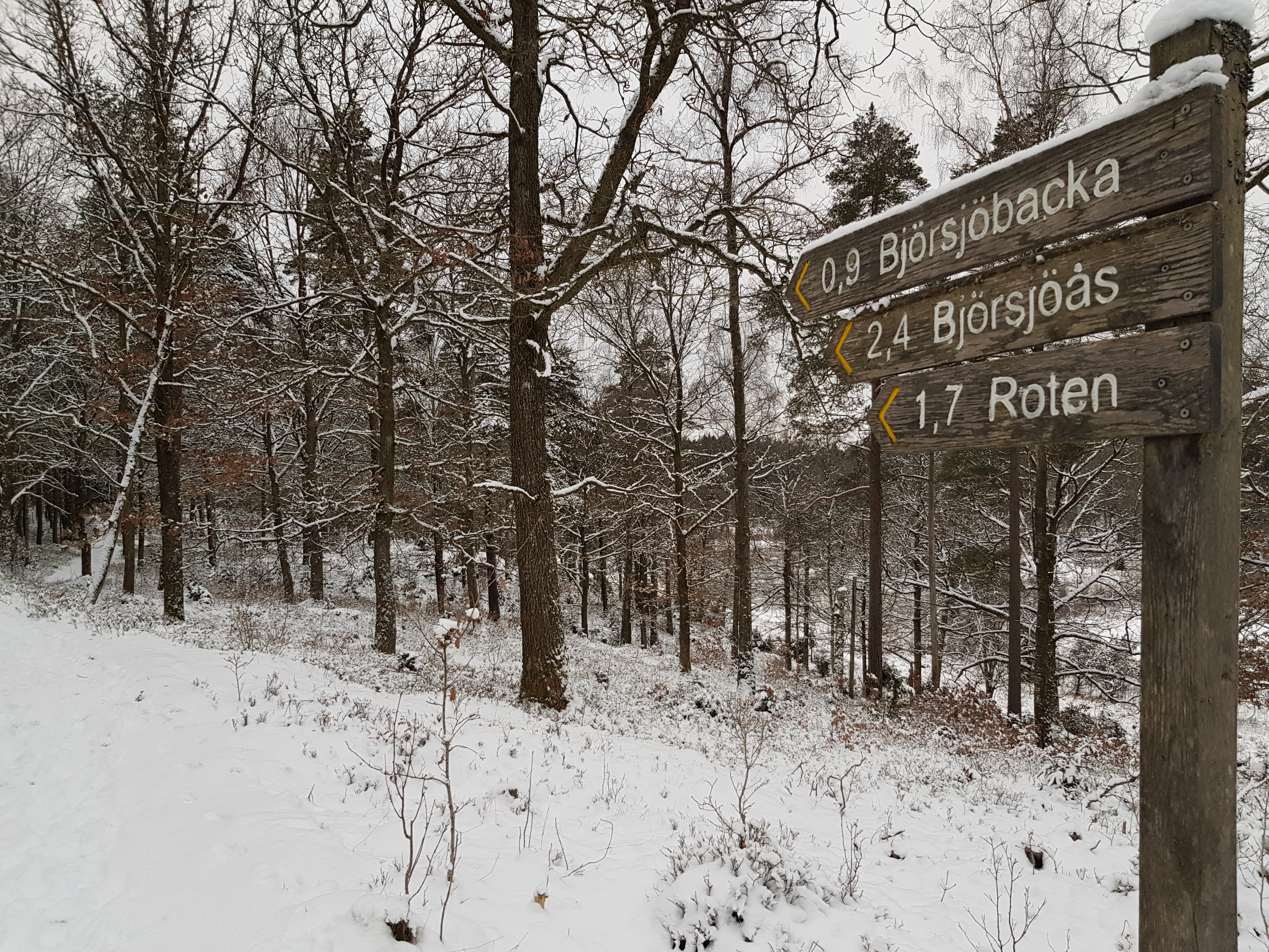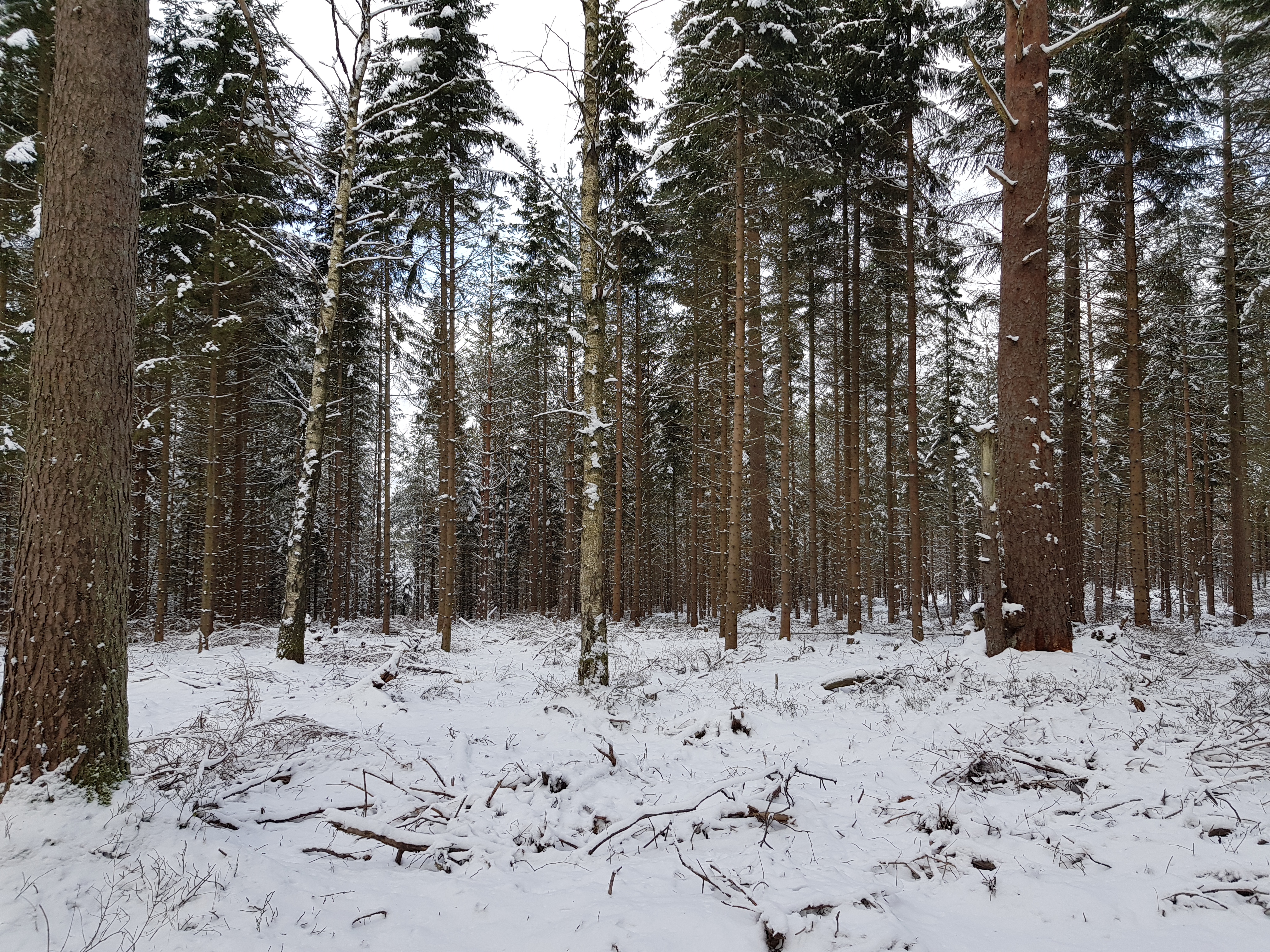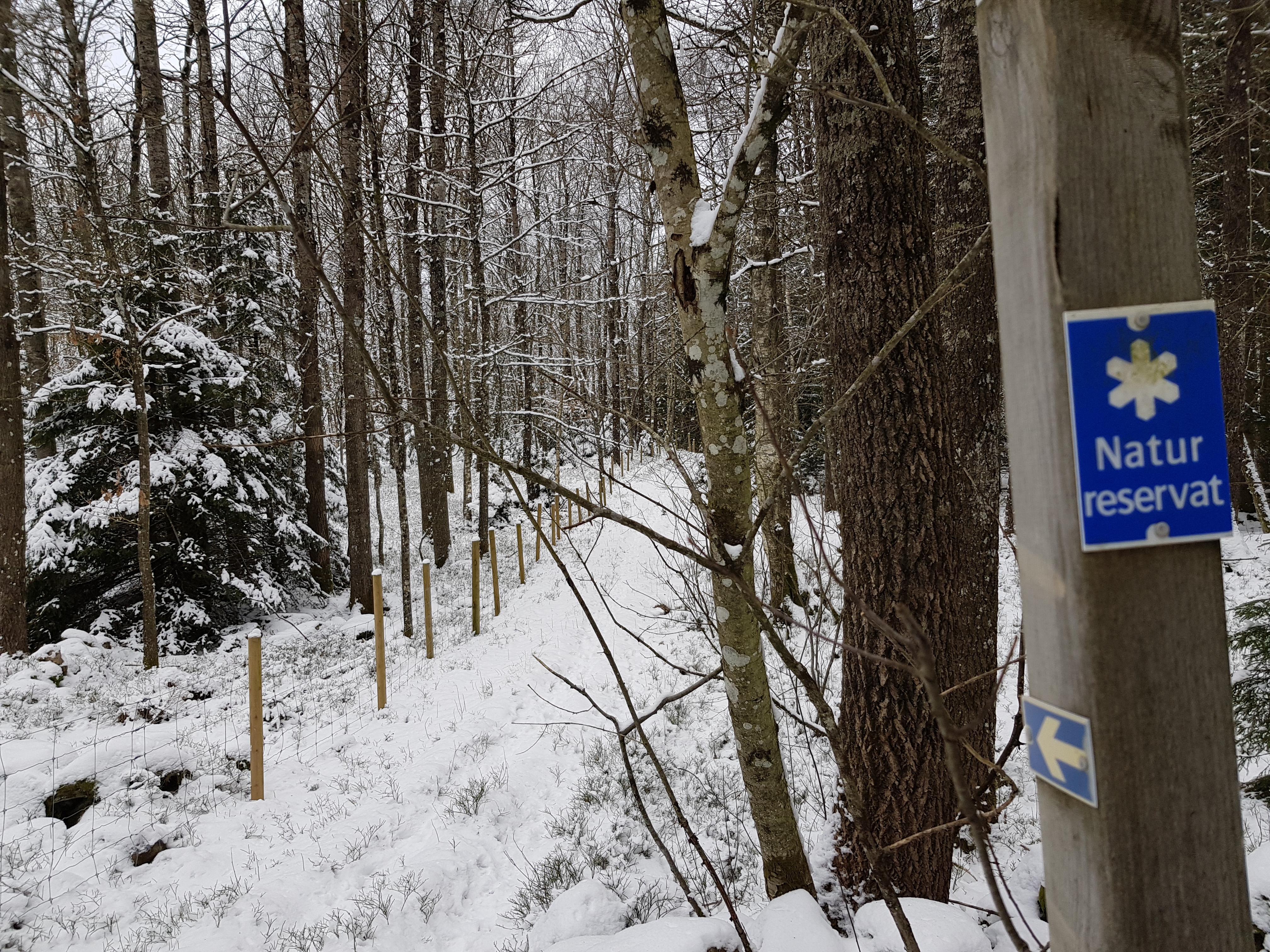 Det dröjde mer än tre timmar innan någon annan människa syntes till. Härligt att kunna få gå ostörd, logga burkar och njuta av naturen utan horder av promenerare, joggare och MTB-folk, denna dag mötte jag, under den drygt 4 timmar långa vandringen, endast en stavgångare och en större familj med pulkor som kom vandrande nära Skrapekärr. Den medhavda matsäcken kunde avnjutas under en gran, nära en burk givetvis, i lugn och ro, riktig livskvalitet.
