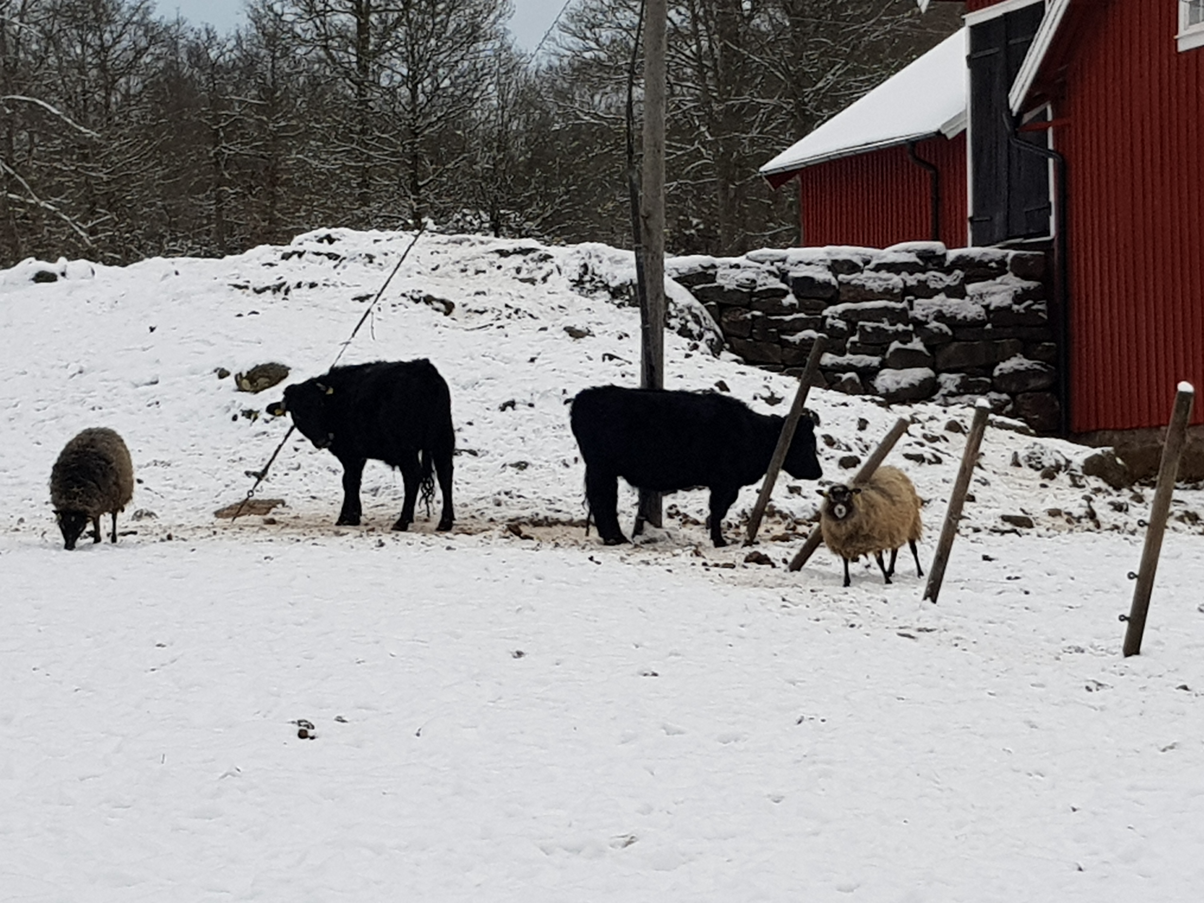 Vid Björsjöbacka passerar vandringsleden genom en större hage, och även denna kalla dag var det många små lurviga djur ute som nyfiket tittade på den mystiske Hallén som klev fram över deras marker.