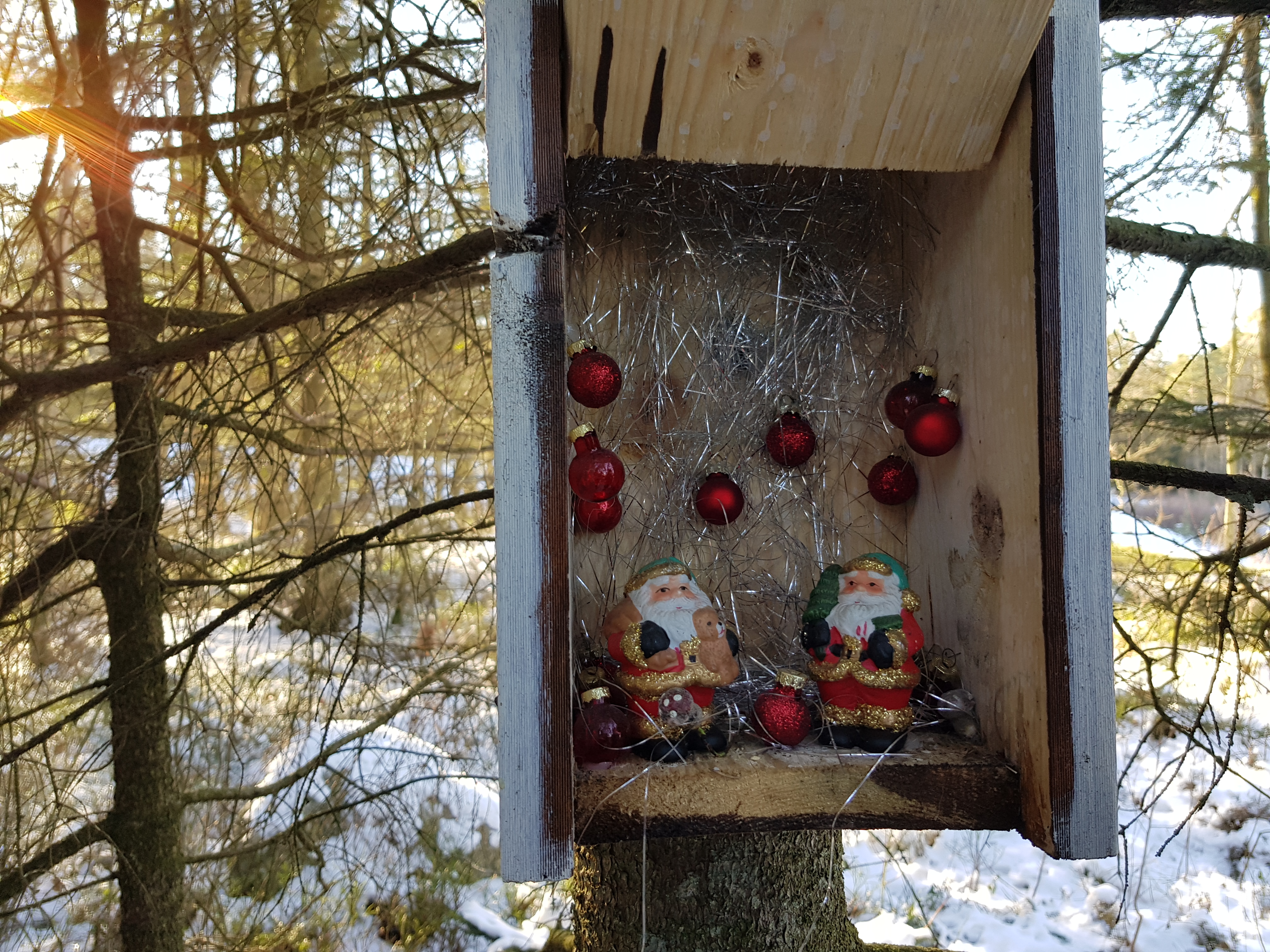 Vi började med en riktigt korkad cache…. multin Härryda Julkalender 2018 #04 – Ferdinands Favorit som hittades utan problem. Därefter stod en myst på vårt program, Härryda Julkalender 2018 #23 – 4e Advent, därmed hade vi firat jul ordentligt. Hittills hade allt gått bra under färden, men denna framgång skulle brytas när vi nådde Hur kom den dit då? Där letade vi länge utan framgång, två livlinor kontaktades men ingen kunde minnas burken. Slutligen fick vi ge upp och gå vidare mot Hänger du med? Och det gjorde vi, iallafall tillräckligt för att burken skulle kunna loggas med hjälp av ett lokalt hjälpmedel.