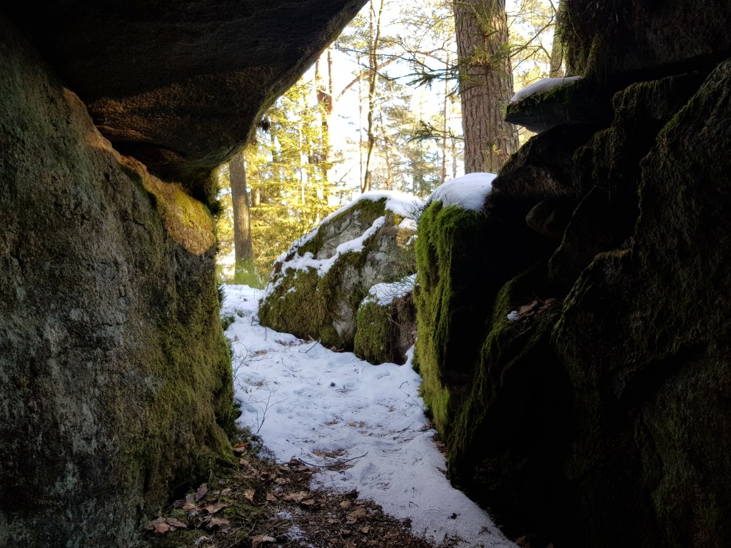 Med denna uppvärmning, någon skulle nog säga nedfrysning, gick vandringen mot norr och den första cachen där var nummer 209. Vid denna och den följande cachen finns det spår efter Trängsåstorpet och Hannetorpet. Det får bli en tur hit igen när snön försvunnit för att närmare studera lämningarn samt besöka Mjörnås där det också legat ett torp.