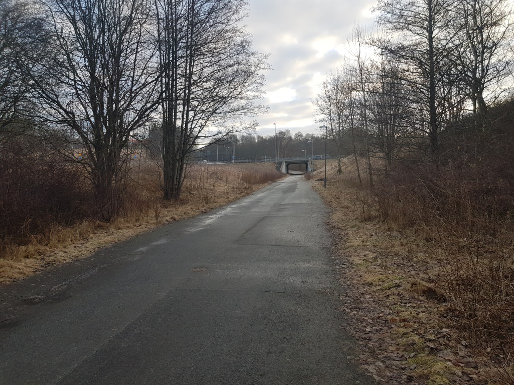 Efter besöket här förra söndagen hade ytterligare några burkar i Göteborgsserien publicerats, #110 till #114. Fyra av dessa nya burkar låg utmed en GC-väg, som nu faktiskt också blivit en GC-väg. Det var helt mugglarfritt på denna minst sagt överdimensionerade väg.