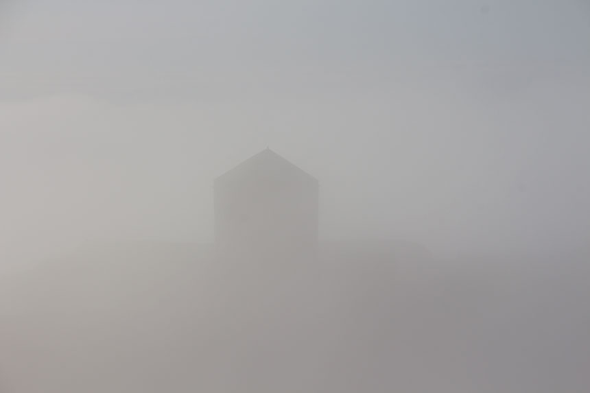 Nu såg dimman ut att ha lättat så jag gick tillbaka till utsiktspunkten och nu var läget ett annat och den mäktiga obesegrade försvarsanläggningen kunde fångas på bild i många olika vinklar.
