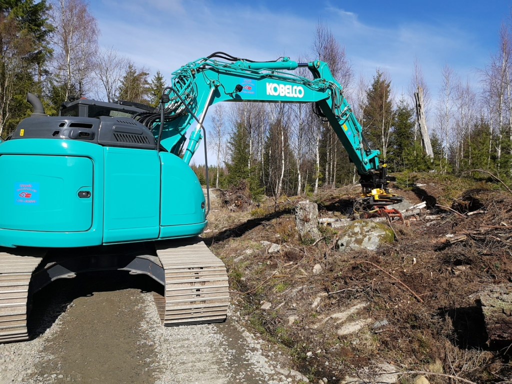 Det var inte någon förare till monstret på plats, även om dörren till hytten var öppen, så jag kunde snabbt plocka fram burken, men man kan undra om cachen kommer att överleva arbetena som pågår utmed skogsvägen.