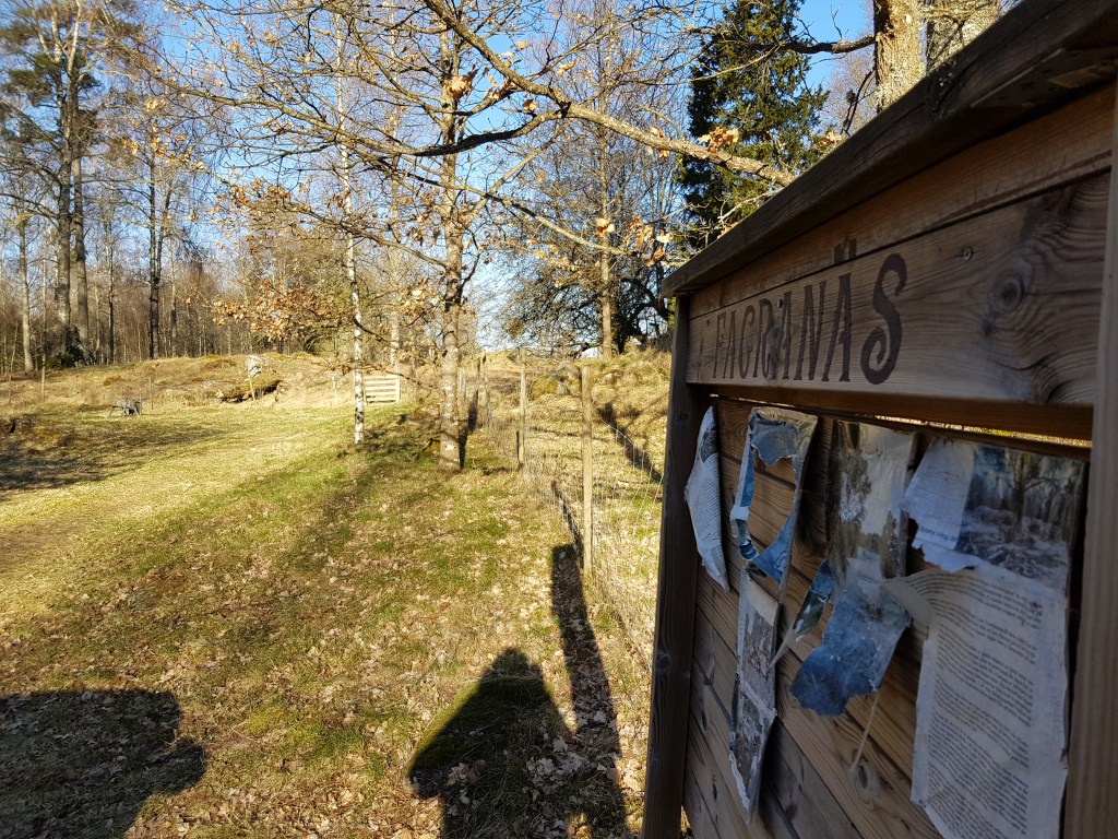 Söndagens utflykt skulle bli en kombination av geocaching och fotografering av några historiska platser. Dagens första mål var Fagranäs, där finns en märklig borganläggning som inte omnämns i de skriftliga källorna, namnet är därför en efterkonstruktion. Som så ofta när det gäller medeltida historia måste man göra antaganden och när det gäller platsen vi kallar Fagranäs går det att misstänka att den ersattes av Vädersholm som ligger 600 meter norrut under 1370-talet. Fagranäs är en ovanlig anläggning. Huvudborgen är rund och består av en konstgjord kulle, en så kallad motte, det var sådana som normanderna uppförde i mängd över England efter erövringen 1066, men i Sverige är sådana ovanliga.