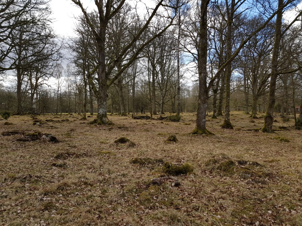 Det var fina omgivningar men det var oväntat mycket mugglare aktiva i denna trakt. Jag trodde att den mycket kyliga vädret denna dag och den hårda vinden skulle skrämma bort mugglarna, men istället var det horder av denna art, det var nästan Skatås-mängder av dem! Men det var bara att ”göra jobbet” och leta upp burkarna även om en del tittade med skeptiska blickar när de såg någon som gick utanför den anlagda stigen.