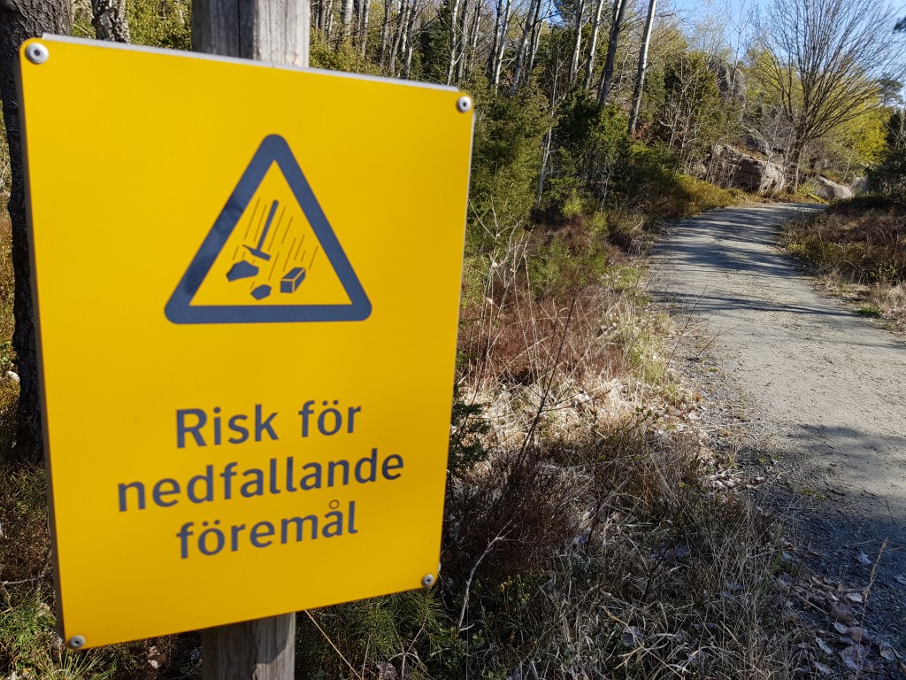 Det var inte några problem att hitta burkarna i denna serie. Det var dessutom ett fantastiskt bra område att vandra genom med omväxlande natur och terräng. Under hela vandringen mötte jag endast en joggare, annars var det jag, burkarna, djuren och växterna som hade sällskap, skönt med så fridfulla platser. Men helt utan faror och äventyr var det inte, vid de sista burkarna jag hade tänkt att logga denna dag satt det varningsskyltar, kanske kan man här få isyxor och tegelstenar i skallen!