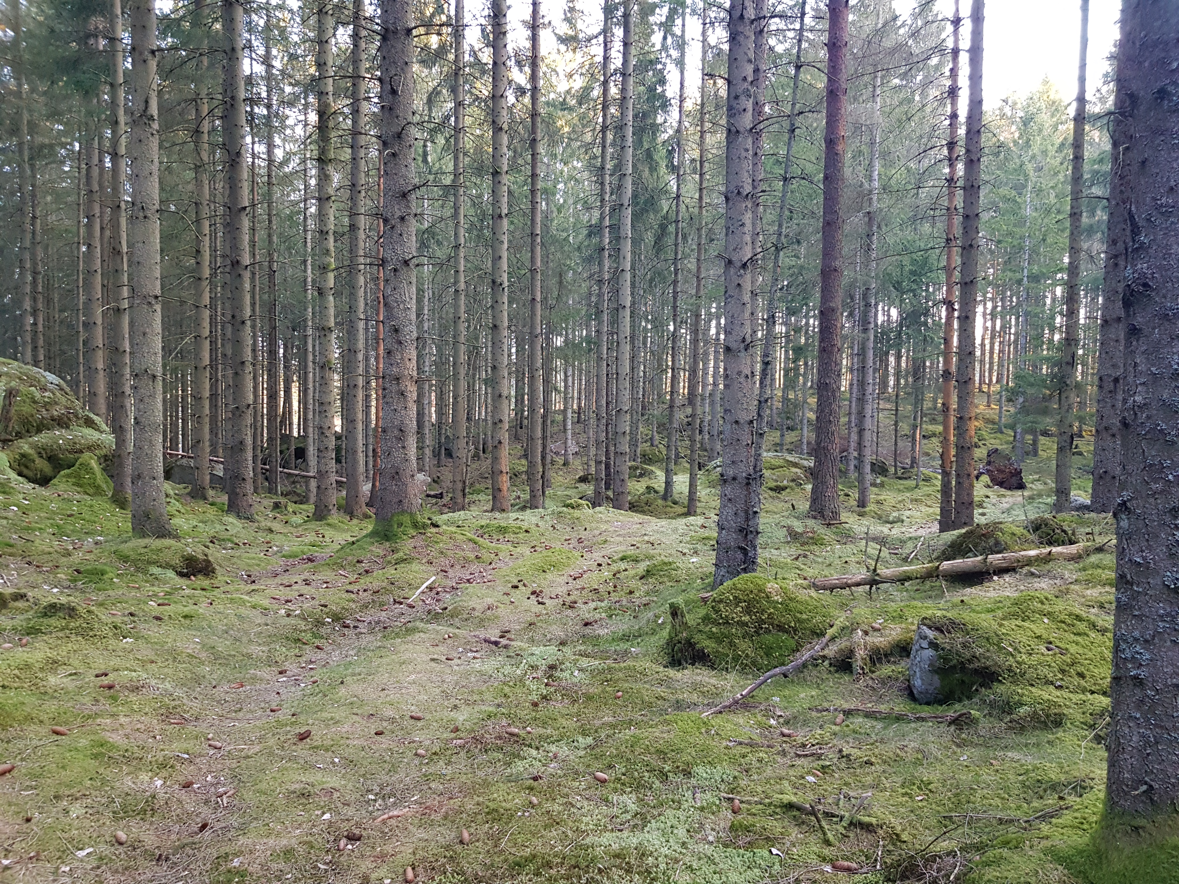 Härskogen nästa, sa jag till Rulle T, som med ett något misstänksamt brummande startade. Han anade väl att färden skulle gå till Lerum, en ort man inte kan tro på! När klockan slog 6 rullade vi in på parkeringen och det var dags att påbörja dagens skogsvandring.