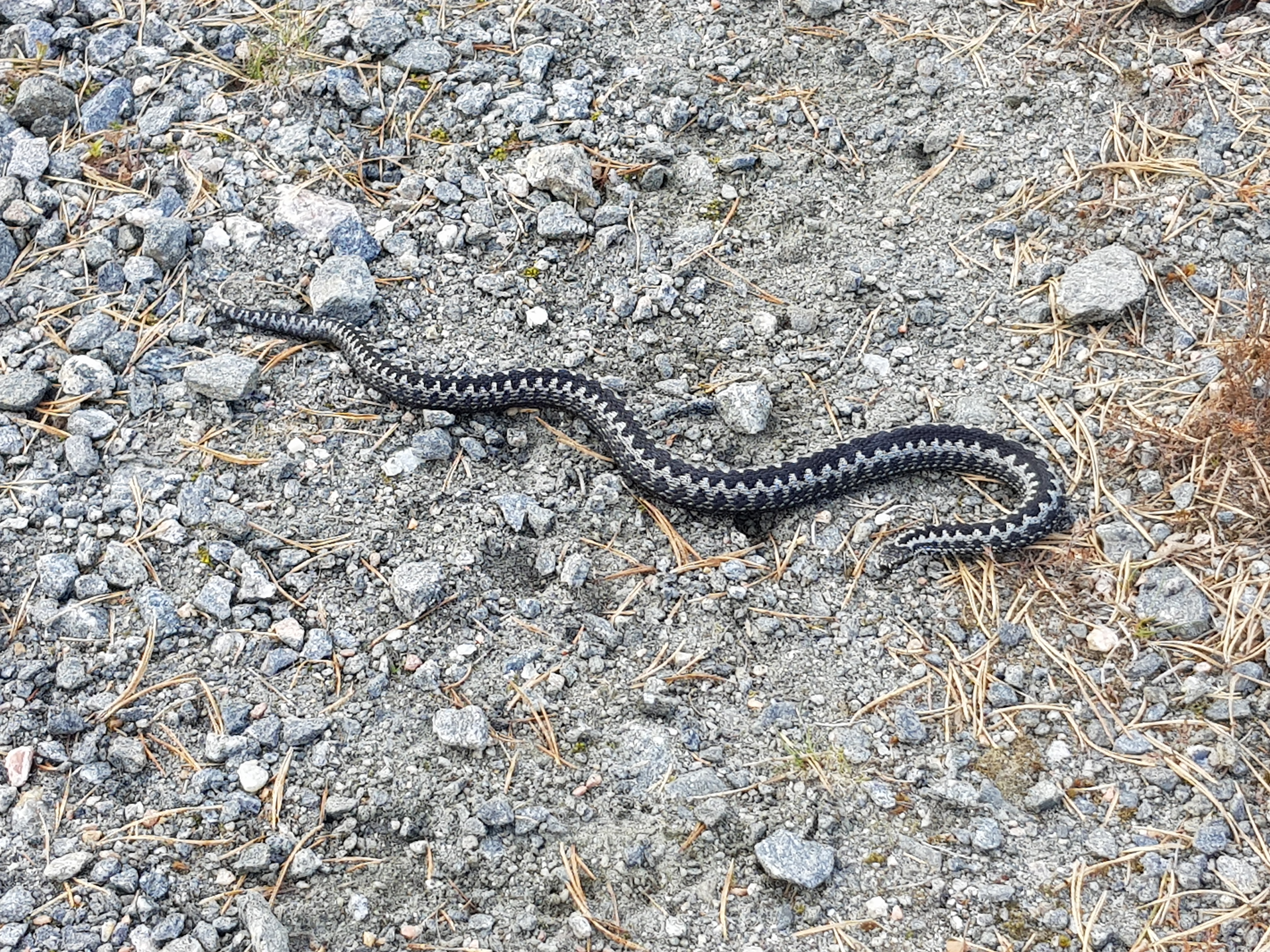 Utmed denna väg möte jag en mugglare med hund, två gånger faktiskt, och vid andra tillfället stod han still och pekade på marken. Strax framför mina fötter låg en huggorm, och den var inte vänligt inställd. Sällan har jag hört så mycket väsande från en huggorm, den ogillade mig och framförallt hunden som den gjorde utfall mot. Men ormen var inte speciellt rörlig denna kyliga förmiddag, så det var lätt att undvika att bli ”huggen”.