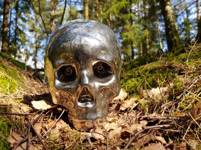 Efter att ha korsat stora vägen gick vandringen i stiglöst land upp till Jul i Lerum 2019 #8 Utsikten. Cachen var belägen på en ganska dramatisk plats med en brant sluttning ungefär där nollpunkten var. Jag började med att göra det hela onödigt komplicerat och inledde sökningen i branten, vilket visade sig vara helt onödigt, den var enklare än så! Nu gick det utför, sluttningen alltså, i riktning mot Jul i Lerum 2019 #8 – Julskogen som hittades oväntat lätt bland stenarna. Därefter kom ytterligare tre jul-burkar i snabb följd, Jul i Lerum 2019 #8 – Jultvilling, Jul i Lerum 2019 #8 – Vällsjöudde-2 och Jul i Lerum 2019 #8 – Jul-en. Det är nästan så att man kände för att klä granen efter detta! Men sådana förströelser fanns det inte tid för i dag, fler burkar väntade nu när vandringen vände söderut förbi parkeringen och gps:en inställd på Gamla Härskogsvägen.
