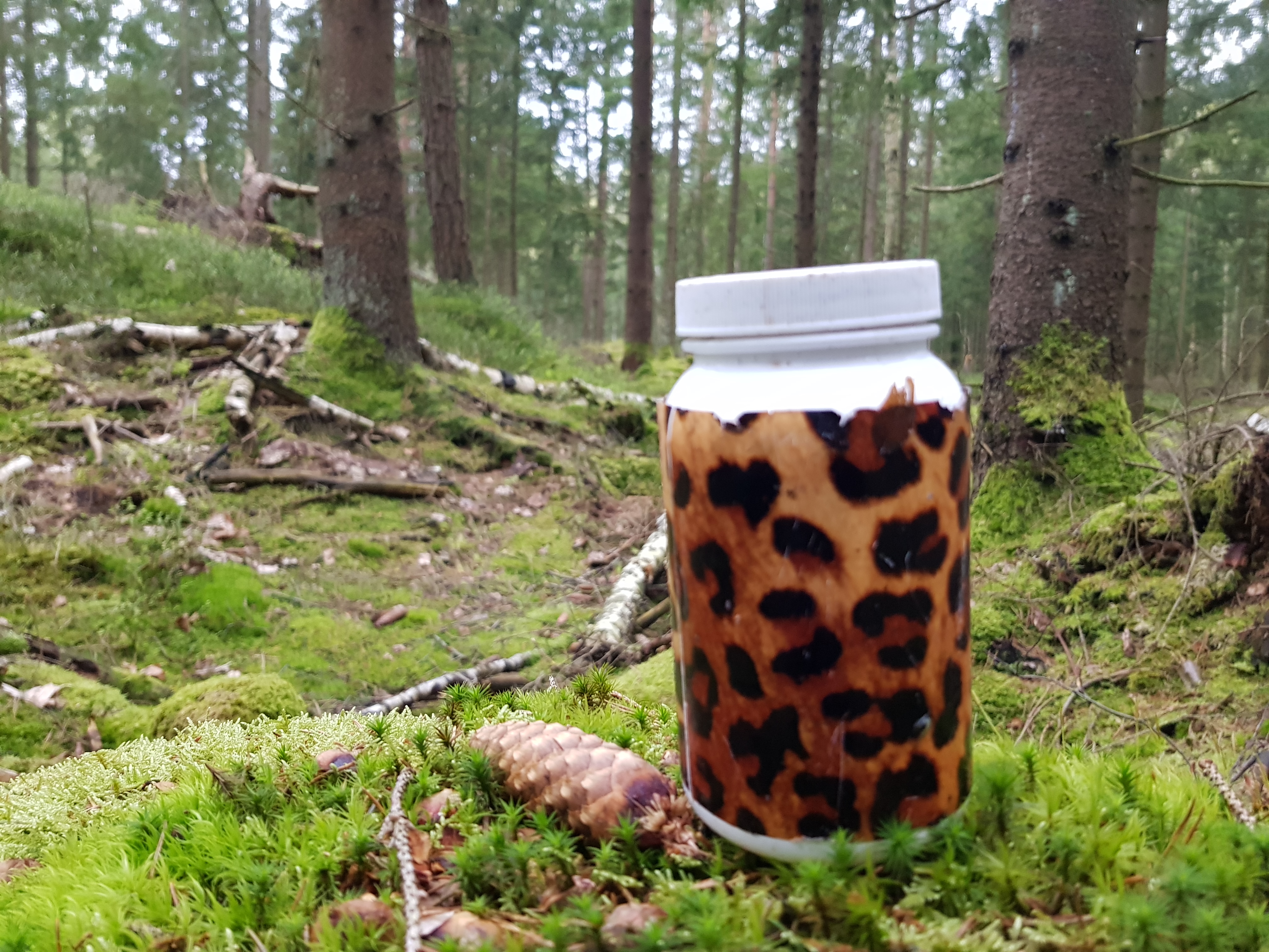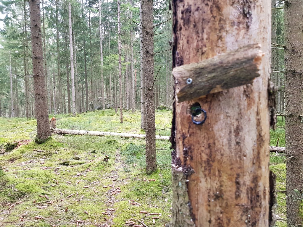 Många av burkarna var gömda inuti olika döda träd, stubbar och annat… En del kunde vara ganska tidskrävande att hitta och #8 misslyckades jag med att finna. Men det var trevligt med lite kreativa cacher!