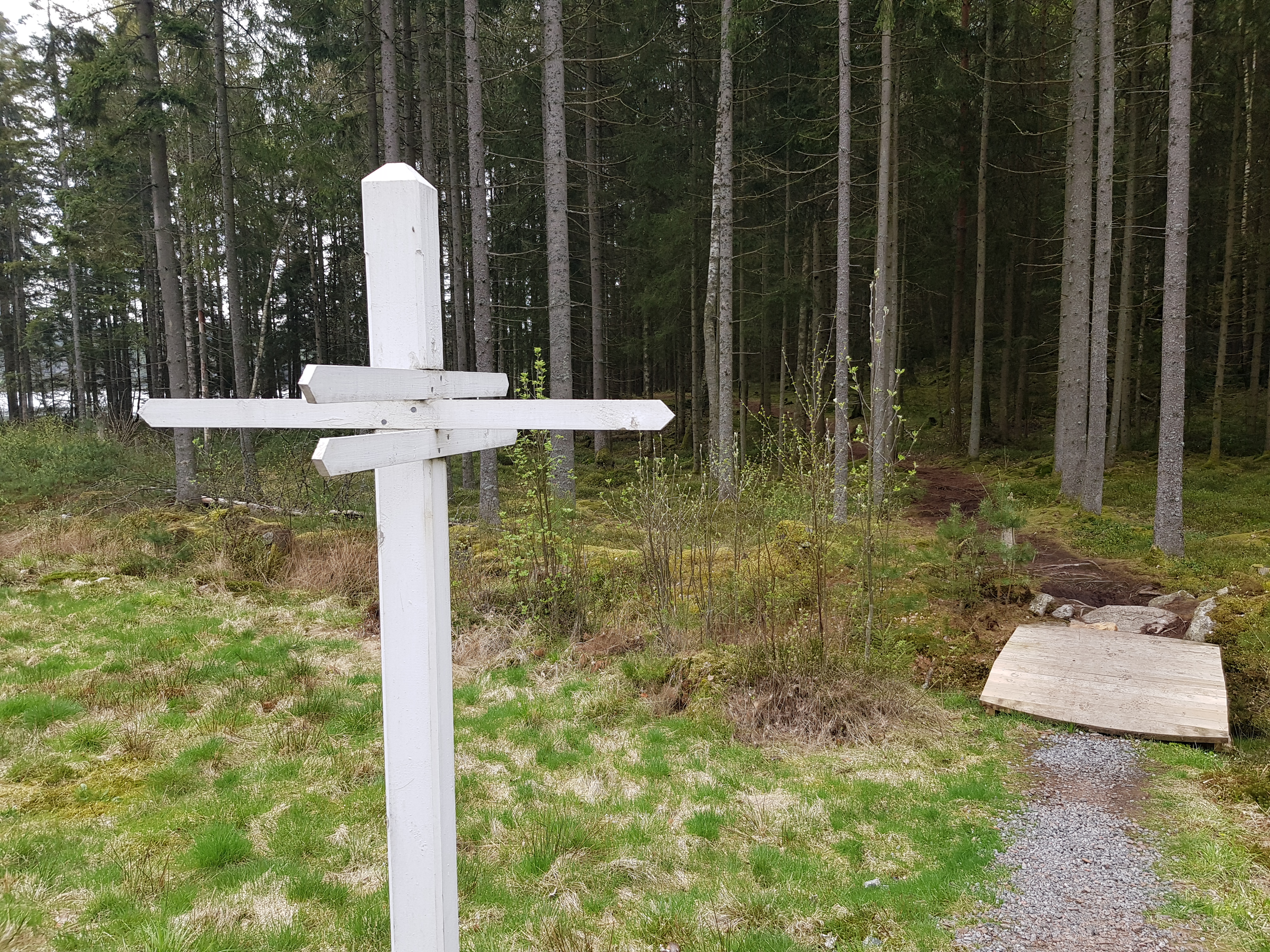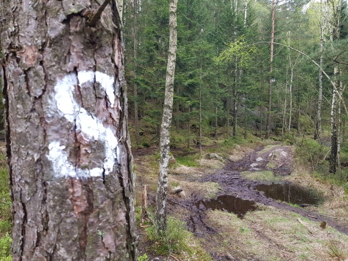 Nu skall vi till L-land – utropade Hallén – men Rulle T blängde misstänksamt med en strålkastare och muttrade något om att sånt går han inte på inte, det luktar Lerum lång väg. Och nog hade Rulle T rätt i att L-land denna dag var kod för Lerum. Österut gick färden och strax före kl. 6 rullade vi in på den parkering som lokaliserats inför dagens vandring. När kängorna satt på fötterna bar det av ut i skogen för att börja leta burk. Turen börjande med Snakepath-seriens tre burkar.