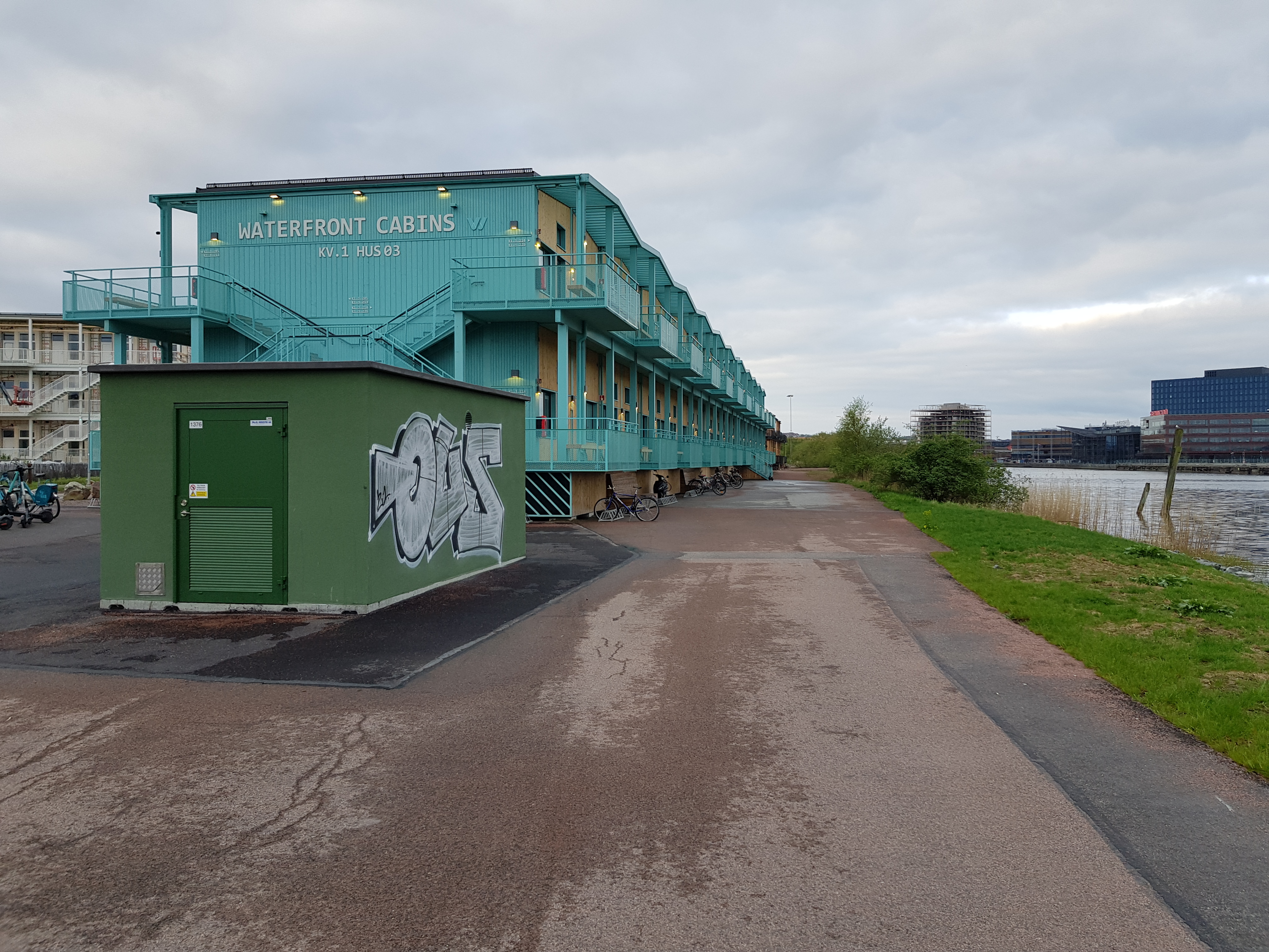 Mellan steg 4 och 5 pågår ett omfattande ombyggnadsarbete av kajen och vägen mellan husen är skyltat som ”privat”, märkligt att invånarna i husen inte ens när kajen är avstängd kan tänka sig att låta de som inte bor i området få passera mellan husen. ”Gated community” tänkande, riktigt trist.