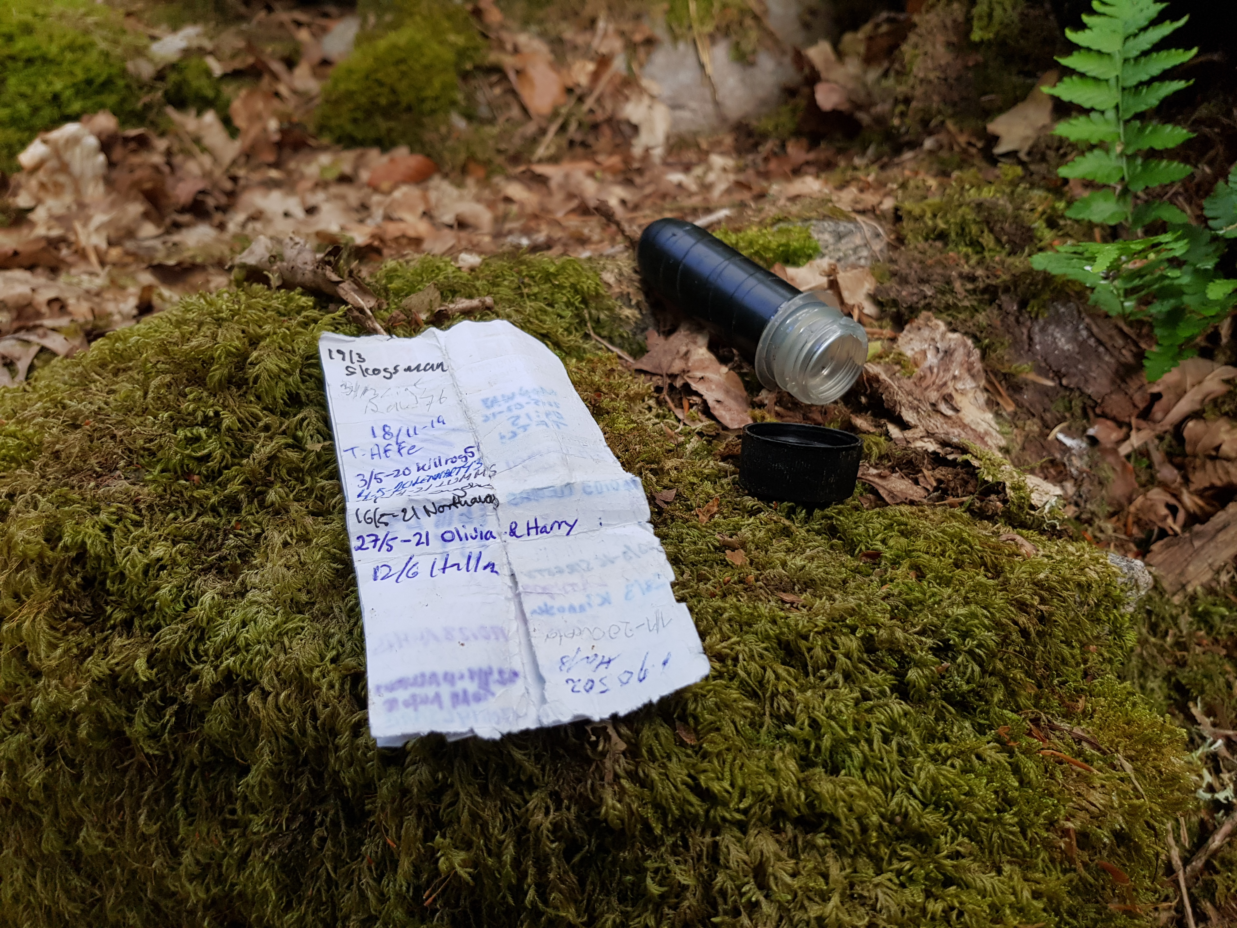 Då jag skulle bli tvungen att gå tillbaka samma väg valde jag att principen att logga varannan cache och på så sätt få sysselsättning båda vägarna. Den cache som låg längst bort utmed dagens vandring var Hallandsleden 2# Triss.