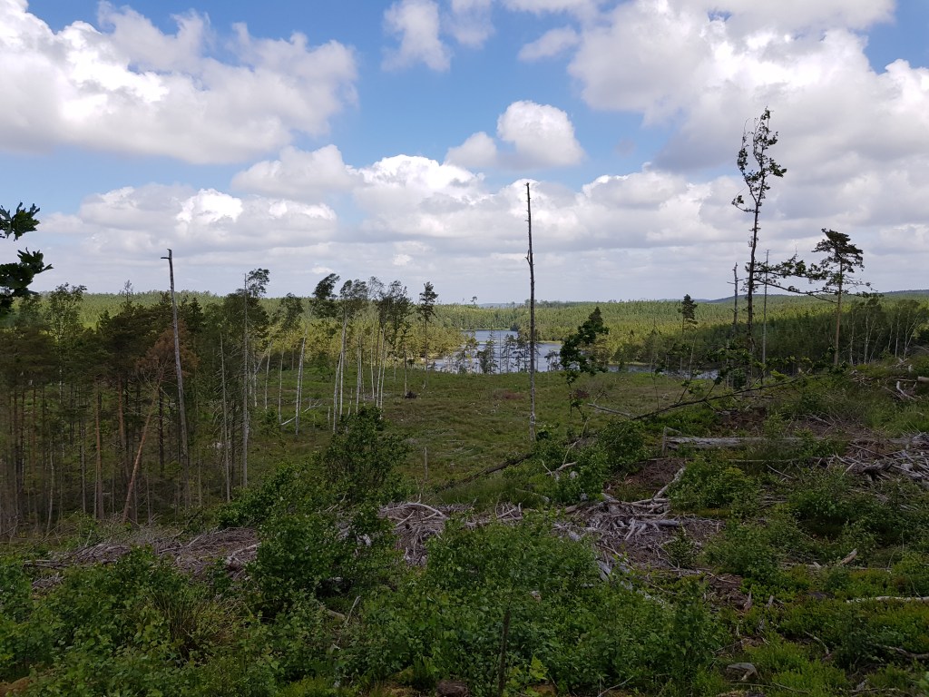 Det blev stigar, små grusvägar, hyggen och helt stiglöst land under turen kring sjön. Överallt syntes spåren av vildsvinen, men lyckligtvis blev vandringen grisfri!