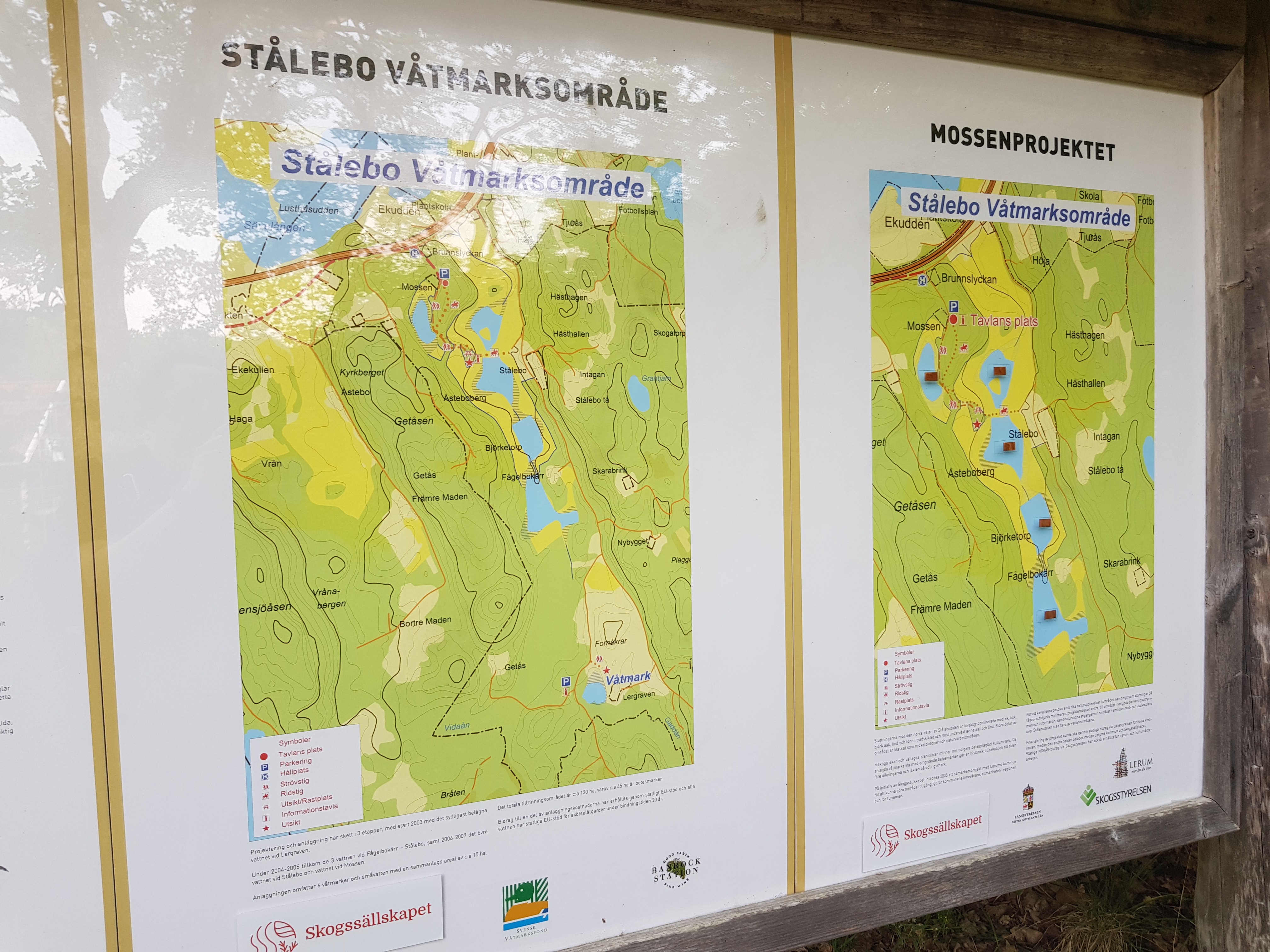 Nu fanns det inte fler cachetyper i närområdet, hoppas doktor Hallén blir nöjd. Men geocachare Hallén var inte riktigt nöjd utan ville få några loggar till. På andra sidan stora vägen fanns ytterligare en lab-runda med final och en traditionell cache vid Stålebo våtmark. Med hjälp av Rulle T gjordes en snabb förflyttning till nya P-koordinater och dagens andra, lite kortare vandring inleddes. De olika delstegen hittades utan problem och ledde fram mot utsiktsplatsen vid våtmarken och där fanns också den traditionella cachen Stålebo våtmark. Bonusen till ALC rundan fick jag här också veta koordinaterna till.