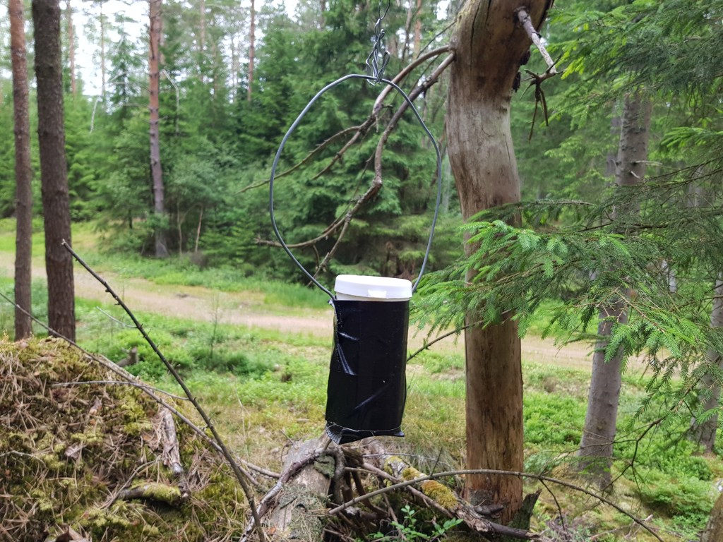 Slutligen nåddes dagens sista burk, Letterbox C, den hittades i två delar! Burken hängde fint på sin gren, men den filmburk som innehåller loggremsan låg på marken nedanför trädet. Något ovanligt, men uppenbarligen har en tidigare besökare missat att lägga tillbaka innerburken och enbart hängt upp ytterburken i trädet.