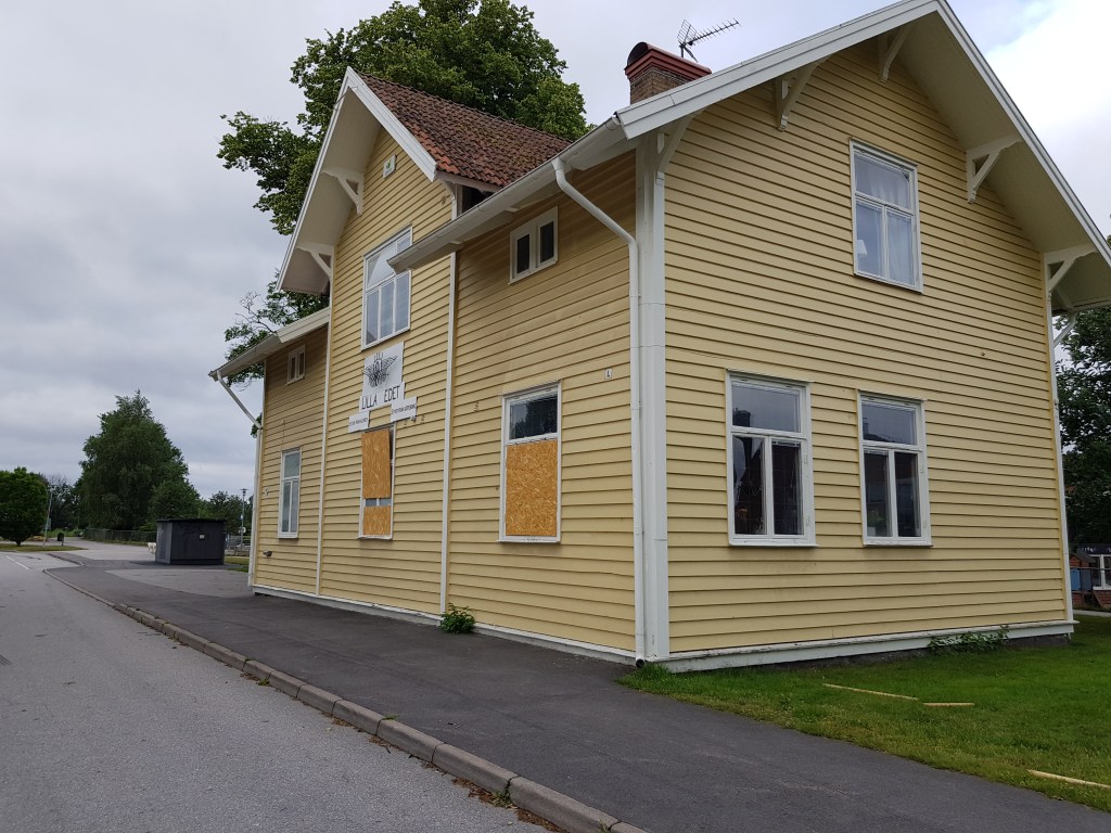 Men det är inte alltid planer går som man har tänkt… Efter knäböjande, krypande och slutligen ålande långt in i det ”objekt” som står på platsen fick jag konstatera att ingen burk kunde hittas. Något förbryllad lämnade jag platsen och gav mig istället på Lilla Edet ALC. Det blev en liten guidad tur genom samhället där jag även passade på att logga Kommunresan 9 – Fuxernaskolan när jag ändå passerade!