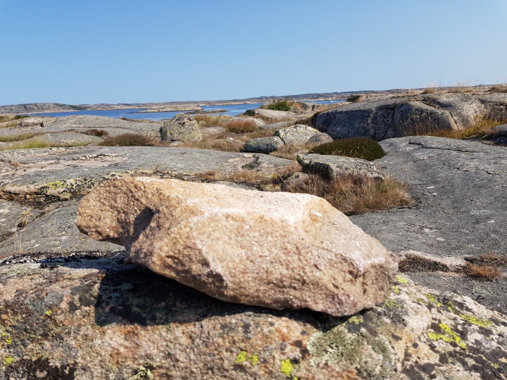 Det var en riktigt fin vandring ut på halvön, både på stigar och över klipporna. Torrt och soligt väder är verkligen att föredra när man skall jaga burk på Bohusläns klippor, när det är blött då kan det vara riktigt riskabelt i dessa områden. Överallt fanns spår av stenhuggarnas verksamhet – och jag funderade på om jag skulle lösa det klassiska bohuslänska kriminalfallet – Stenbrottet. Men nöjde mig med att leta upp nästa burk istället.